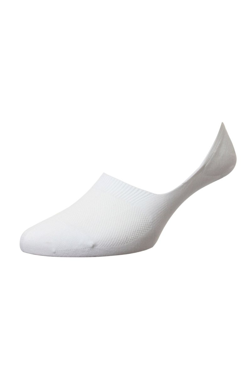 Made from luxurious Egyptian cotton, these no-show socks are naturally breathable and smooth against the skin. An antibacterial finish enhances freshness, while the non-slip heel grip prevents slipping throughout the day. Seamless toe construction ensures irritation-free wear. Designed in England, Pantherella has perfected sock-making since 1937.