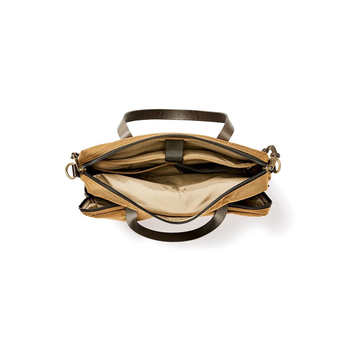 The "Dryden Briefcase" from FILSON is made of tear-resistant ballistic nylon*. The Briefcase is padded and offers enough space for a laptop up to 15". This versatile, water resistant and durable bag is suitable for all of life's moments.