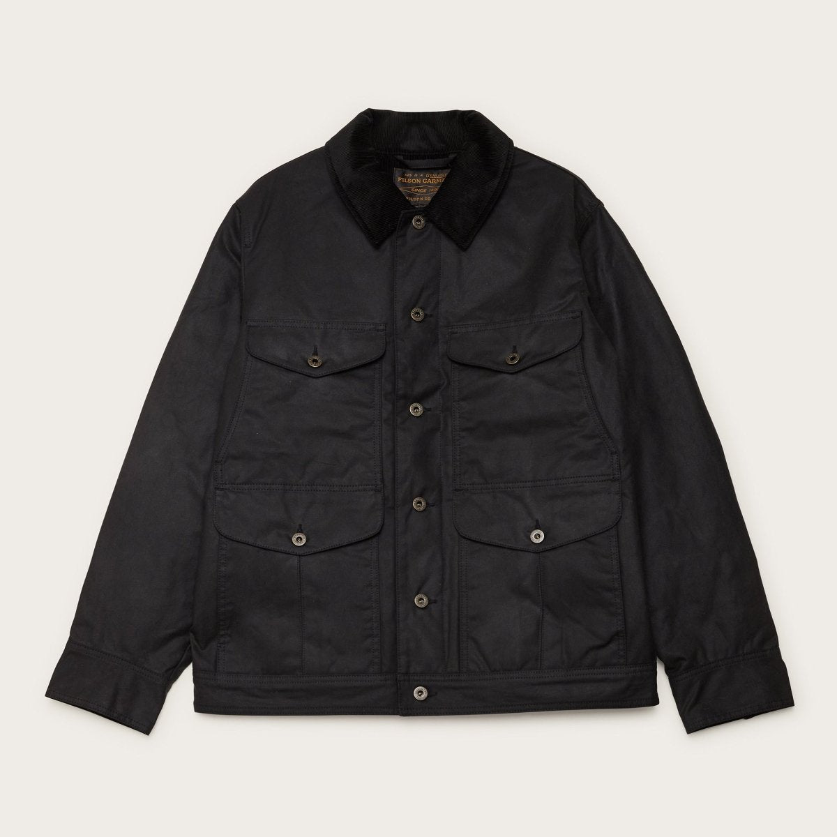 Tough, dependable, and made for years of hard use — the Filson Journeyman Jacket in Black is built to take on anything the day brings. Its waxed fabric repels wind, rain, and snow, providing reliable protection in any weather.