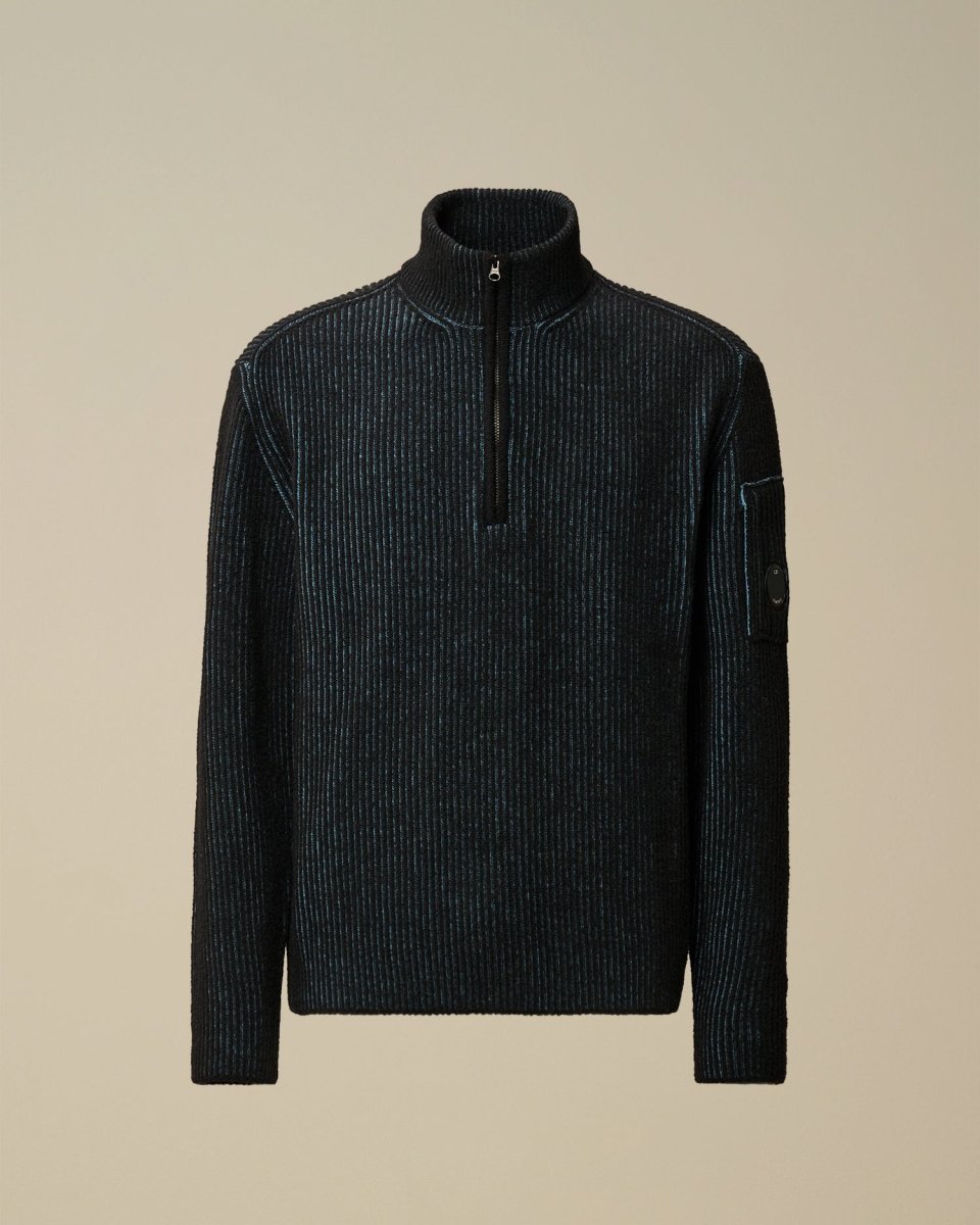Crafted from vanisé lambswool blended with contrasting polyester chenille, this half-zip knit delivers exceptional warmth, texture and comfort. Designed with a ribbed stand collar and finished with the iconic C.P. Company Lens detail on the sleeve. A 7-gauge knit structure provides a refined yet functional look. Regular fit.