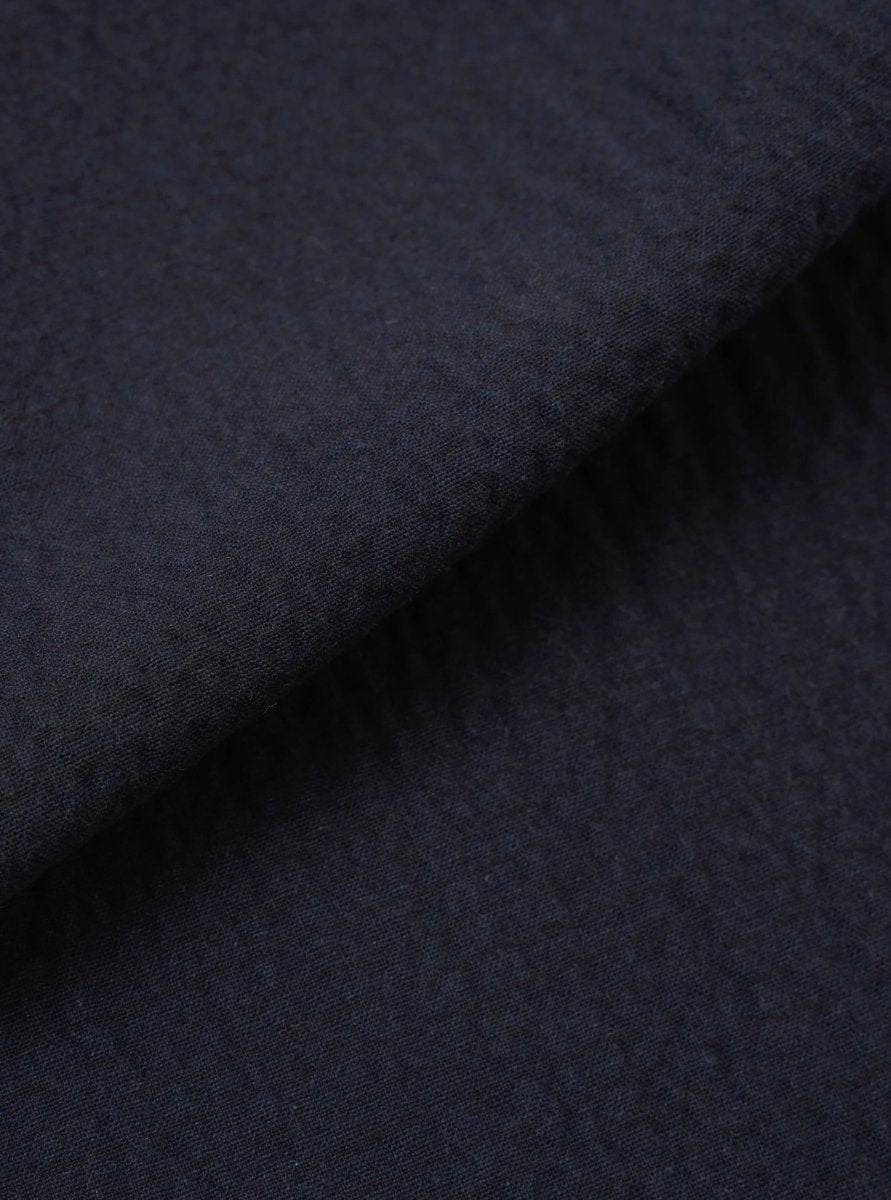 Crafted from textured Ospina Cotton, the fabric provides breathability and subtle structure, making the trousers ideal for everyday wear across seasons. The single pleat front adds volume and comfort, while the elasticated waistband with drawstring ensures an adaptable fit. Functional pocket detailing and a button fly complete the practical design.