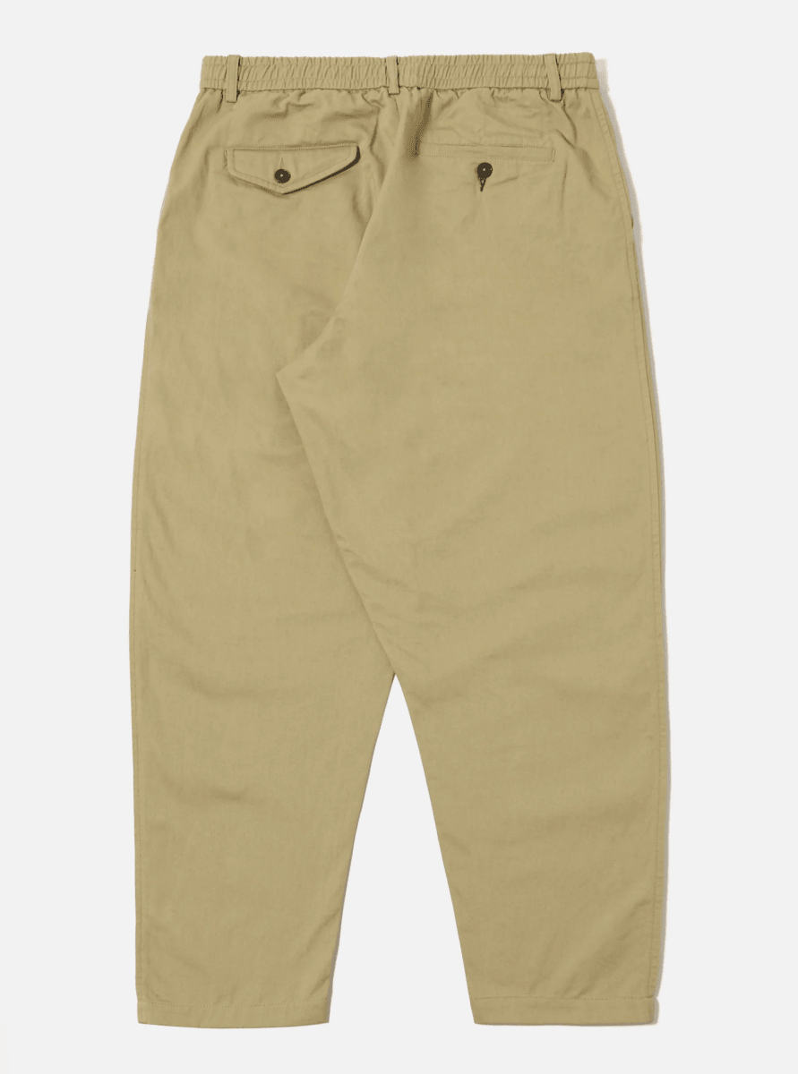 The Universal Works Pleated Twill Track Pant in Sand blends relaxed tailoring with everyday comfort. Crafted from durable cotton twill, this bestselling style features a loose, tapered silhouette with a single pleat front, offering both freedom of movement and a clean, modern look.