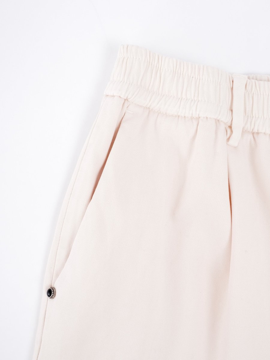 The White Sand Steve Pleated Pant combines refined Italian craftsmanship with modern comfort. Designed in a versatile Off White tone, these trousers feature a cropped, tapered fit that’s relaxed at the thigh and perfectly tailored at the ankle. The stretch waistband with belt loops ensures an ideal fit, while the single front pleat adds a touch of sophistication. Crafted from a premium cotton-elastane blend, these pants deliver both flexibility and timeless style. Perfect for everyday wear or smart-casual looks.