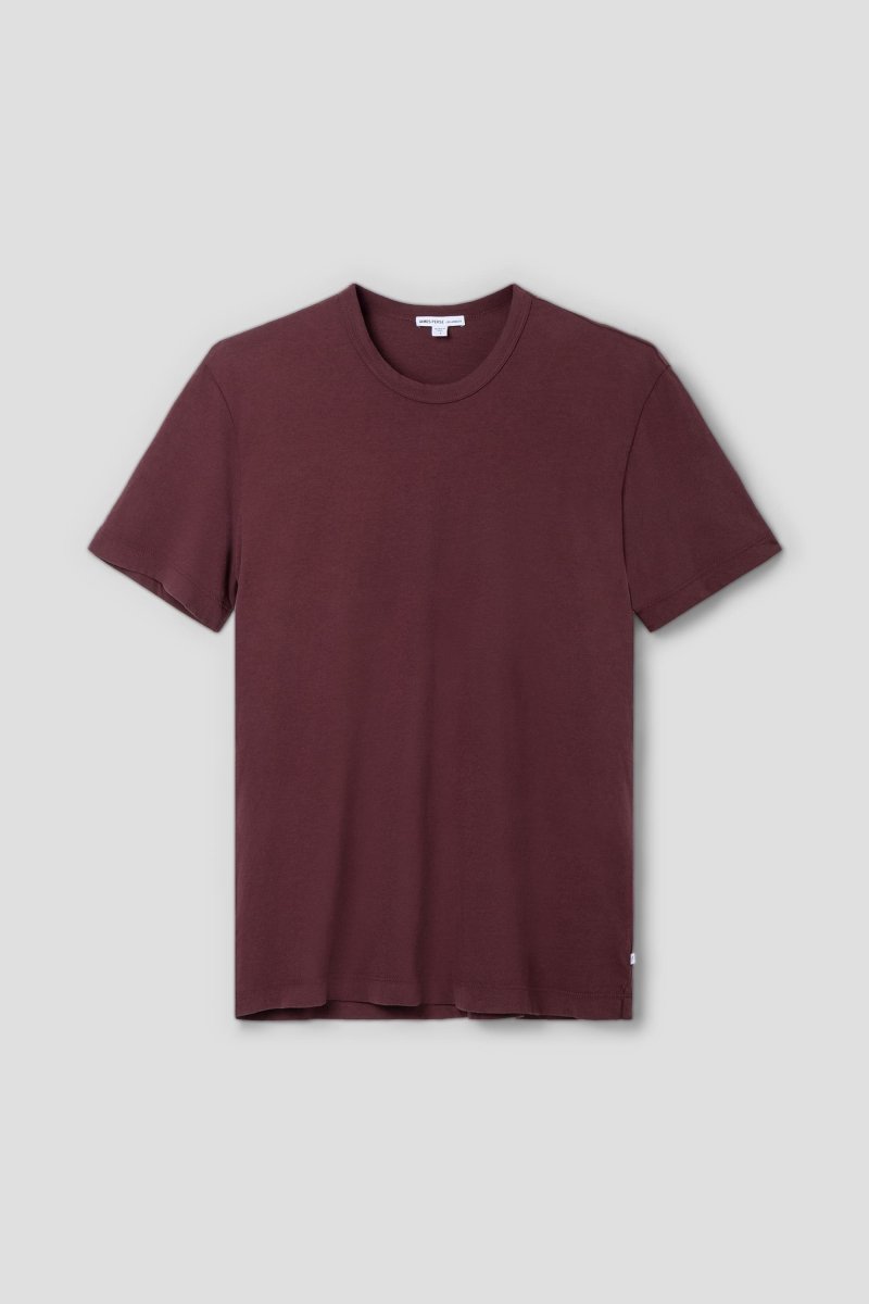 The James Perse S/S Crew T-Shirt in Dark Plum is a refined everyday essential defined by premium craftsmanship and a subtle vintage character. Made in the USA from midweight 100% cotton jersey, it is garment-dyed for a naturally worn-in look and a soft, matte finish. The clean construction, combined with a shape-retaining neckline and precisely finished hems, ensures lasting comfort and a polished silhouette.