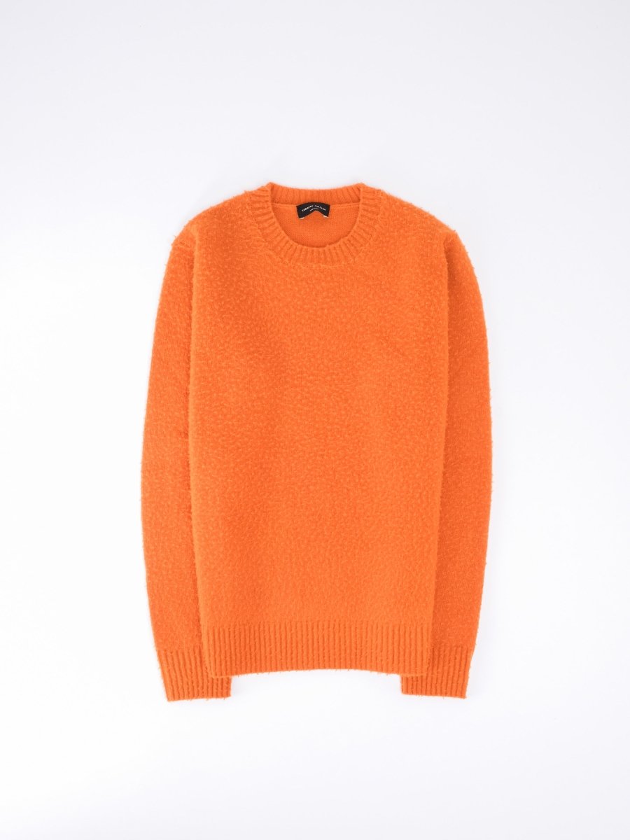 The Knit Sweater Casentino in Orange by Roberto Collina embodies Italian elegance and modern luxury. Expertly Made in Italy from 100% Super-Fine Merino Wool. This luxurious knit sweater offers unmatched softness, natural warmth and breathable comfort. Its refined texture and relaxed comfort fit create a sophisticated silhouette that pairs effortlessly with both casual and smart looks. Perfect for cool days or layered styling. This designer sweater delivers timeless appeal and exceptional quality, an essential piece for every premium wardrobe.