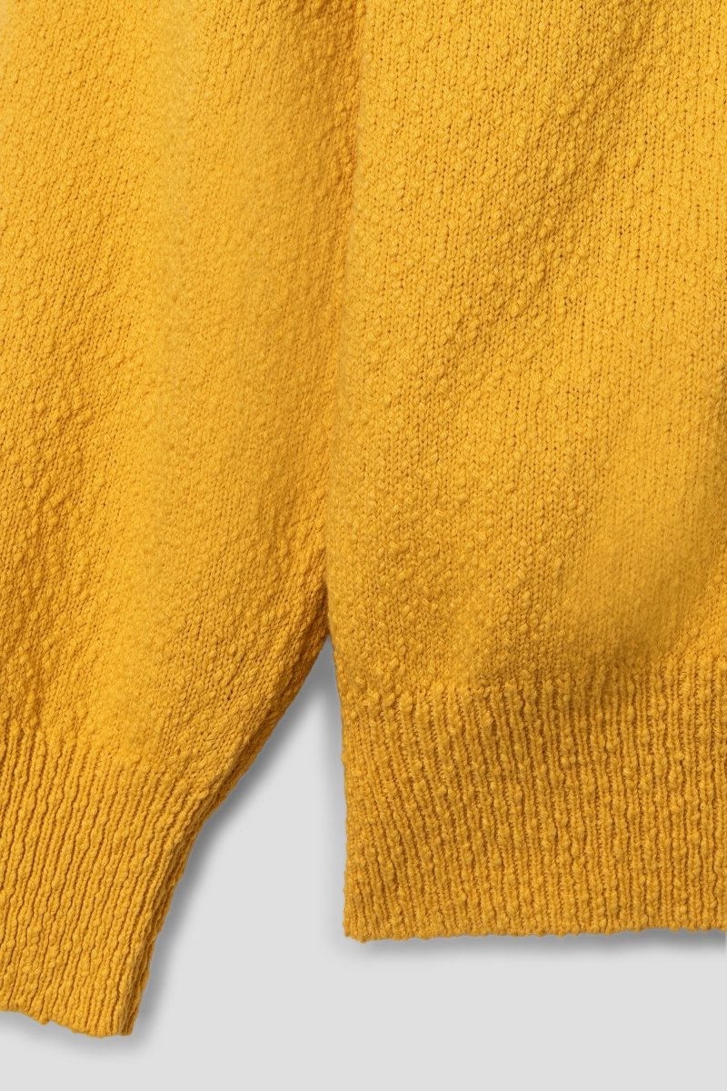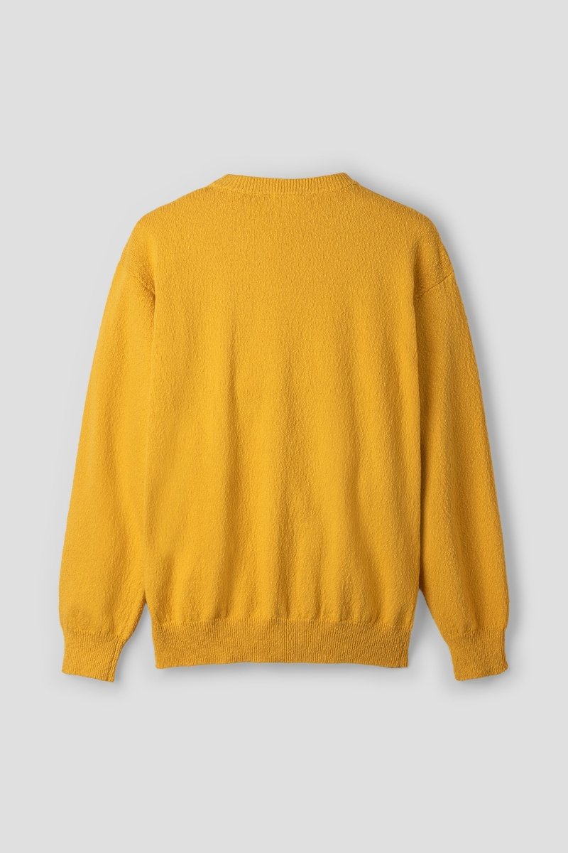 Designed in a comfort fit, it features a clean round neckline, ribbed collar, cuffs and hem, and a subtly textured surface that elevates its minimalist aesthetic. The vibrant yellow tone adds a fresh seasonal accent, making it ideal for layering under tailoring or pairing with relaxed trousers for a modern off-duty look.