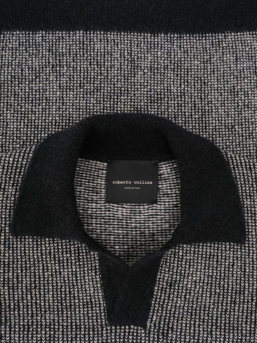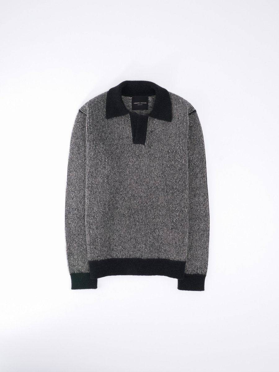 Knit Ls Jacquared Merino Polo / Nero Salt & Pepper