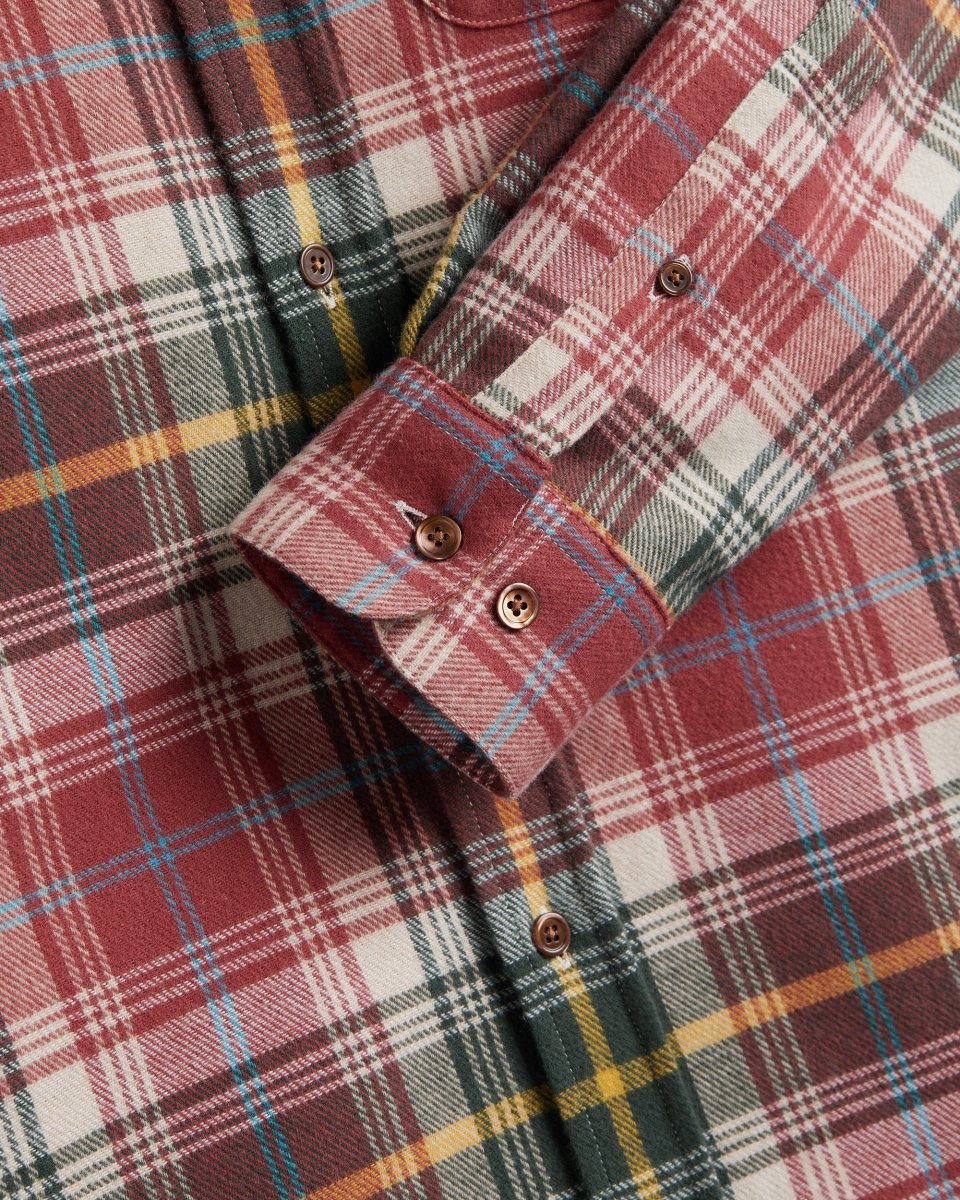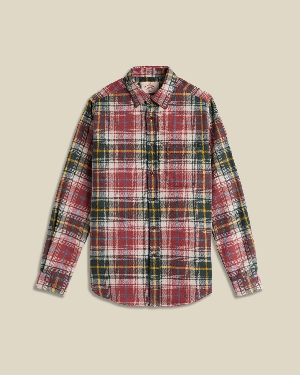 The Portuguese Flannel “Alpi” Shirt embodies the brand’s commitment to traditional craftsmanship and timeless design. Expertly made in Portugal from the finest brushed cotton flannel, it offers exceptional softness, warmth, and durability. The classic red, green, yellow, and cream check pattern captures a rustic yet refined aesthetic, making it a perfect choice for colder months.