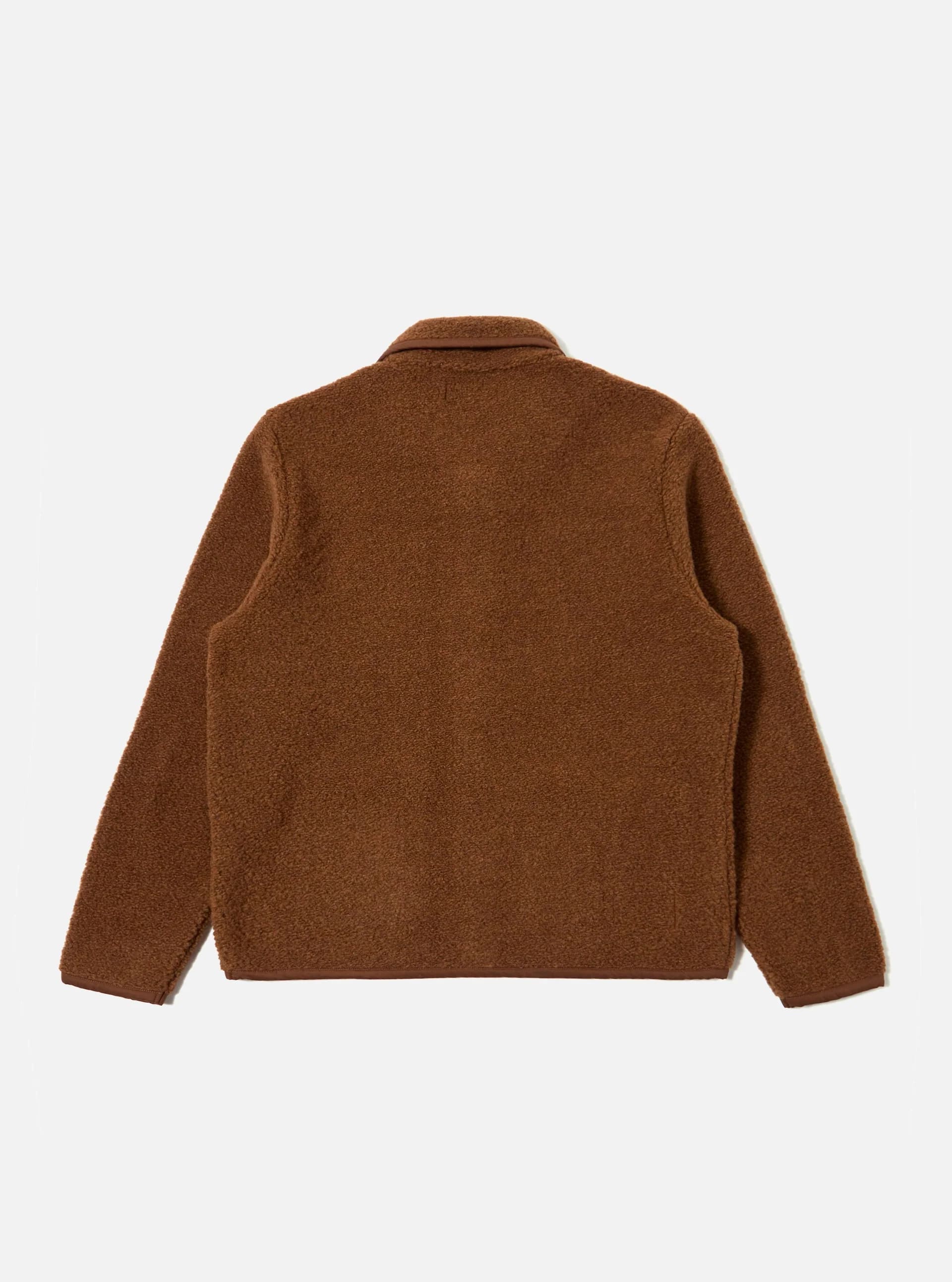 The Alvar Fleece Lancaster Jacket from Universal Works is a relaxed, easy-to-wear piece that brings warmth and texture to everyday layering. Made from soft, high-pile fleece in a rich Cumin tone, it features a distinctive shawl collar and cotton jersey binding along the edges for a refined finish. Two front patch pockets add both practicality and vintage-inspired character. Perfect as a lightweight outer layer or worn under a coat when the temperature drops.