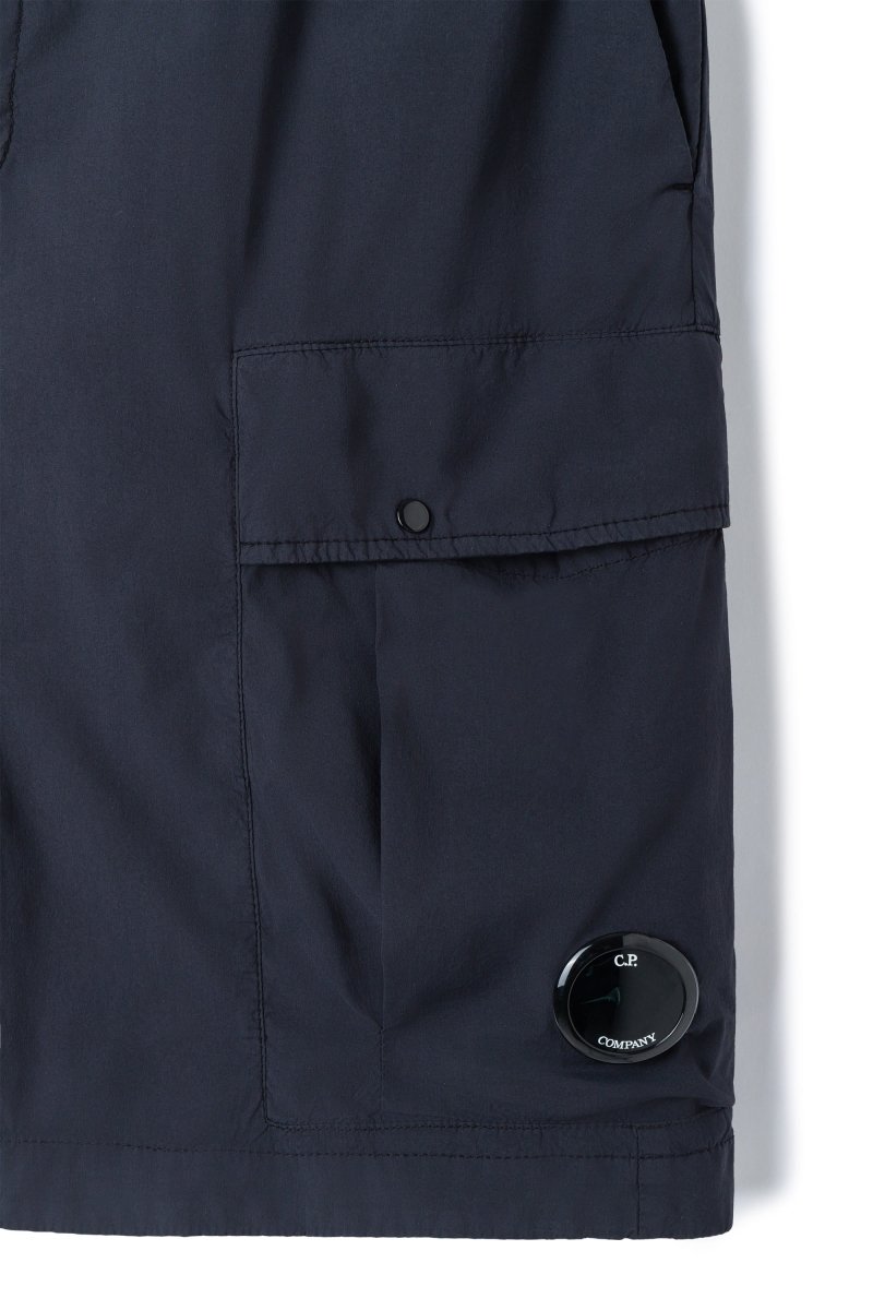 Designed for everyday functionality, the shorts feature an adjustable drawstring waistband, belt loops and a button with zip closure for a secure fit. The practical design includes side pockets, a cargo pocket with flap, snap closure and the iconic C.P. Company Lens detail, as well as a back pocket with snap closure and a sewn logo label.