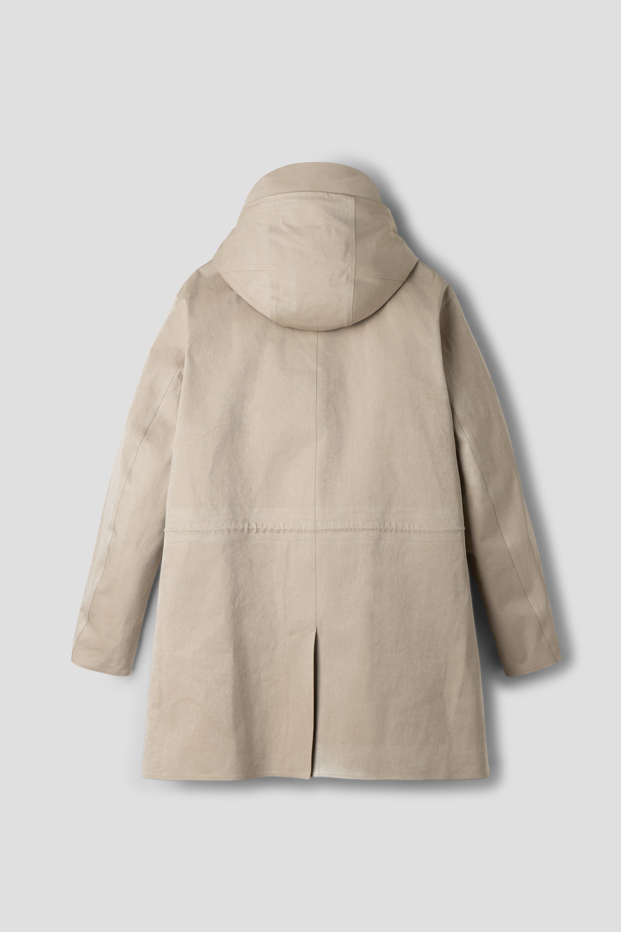 The Ten C Calder Parka in Pale Taupe represents the brand’s uncompromising approach to technical outerwear. Crafted from Ten C’s signature OJJ – Piece Dyed Micro-Fibre Jersey (11 oz), this high-performance fabric develops a unique character over time while offering durability, structure and weather resistance.