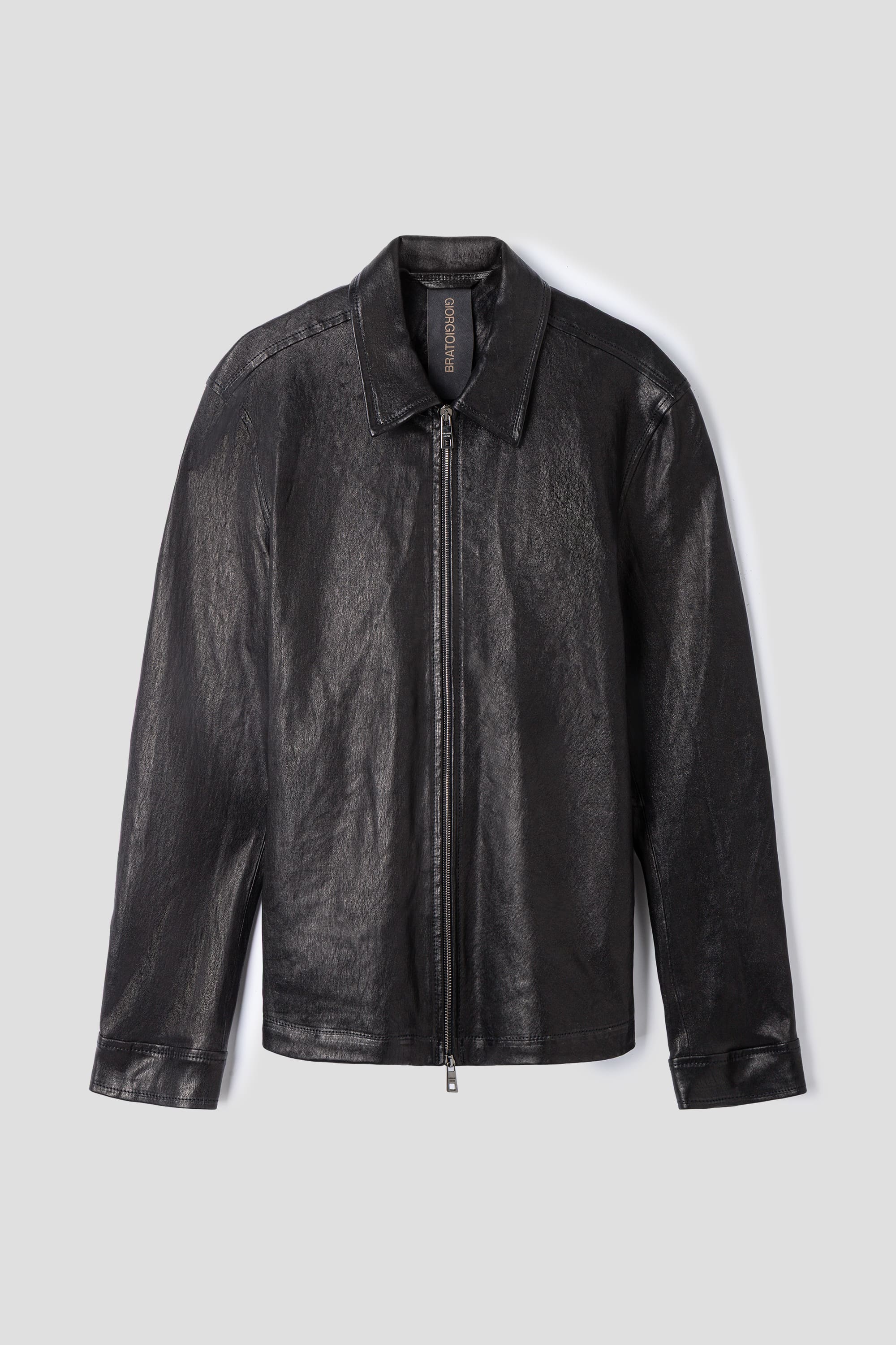 Designed with a clean and timeless silhouette, the blouson features a classic shirt collar, a full front zip closure and subtly tailored lines that create a modern, understated look. The naturally treated leather develops character over time, giving each piece a unique patina and depth.
