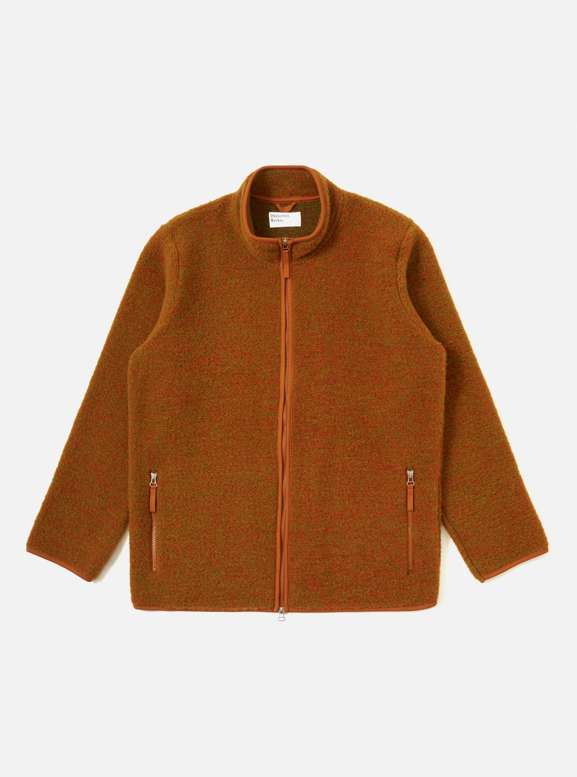 The Climbing Six Wool Jacket from Universal Works reinterprets a classic outdoor silhouette with signature refinement. Made from a warm, textured wool blend in rich Burnt Orange, it features a stand collar, two-way zip front, and contrast cotton binding along the edges for a crisp finish. Combining casual ease with thoughtful detailing, this jacket works effortlessly as an outer layer or under a coat in cooler months.