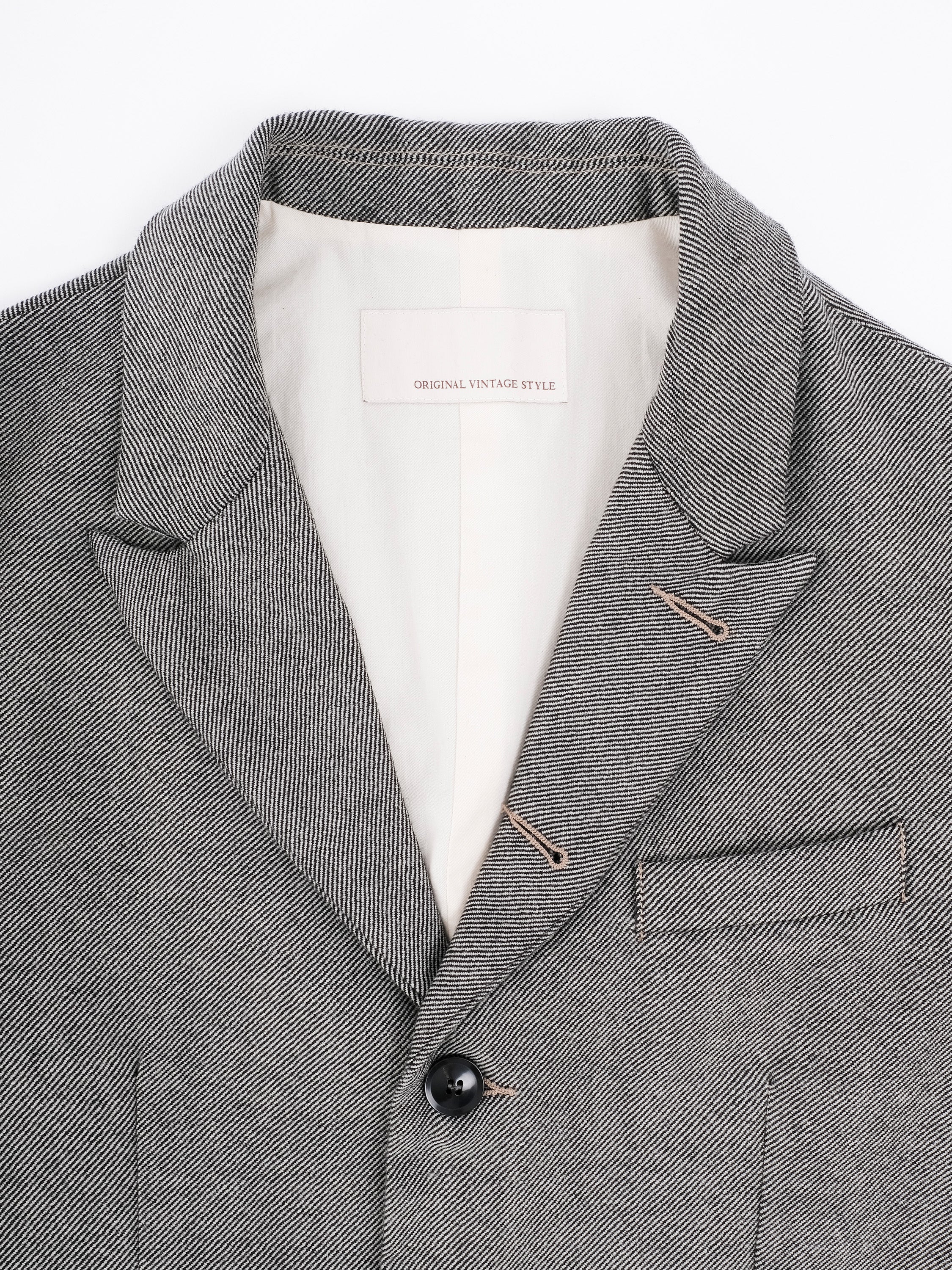 The Byron Washed Blazer by Original Vintage Style showcases the brand’s dedication to Italian craftsmanship and modern elegance. Cut in a tailored fit, this single-breasted blazer features a three-button closure and a distinctive washed stripe design, blending classic structure with a relaxed aesthetic. The notch lapel, one chest pocket, and two flap pockets highlight its timeless detailing, while the 100% virgin wool fabric ensures premium quality and comfort.