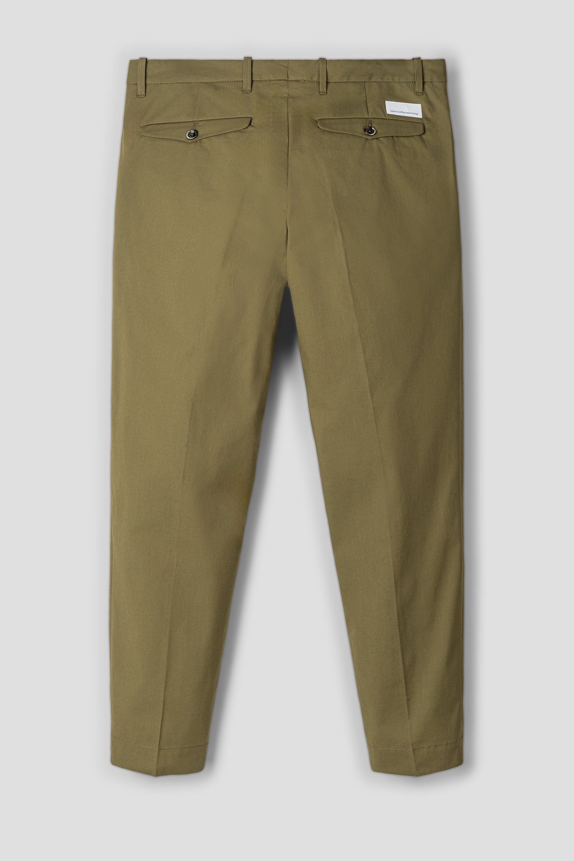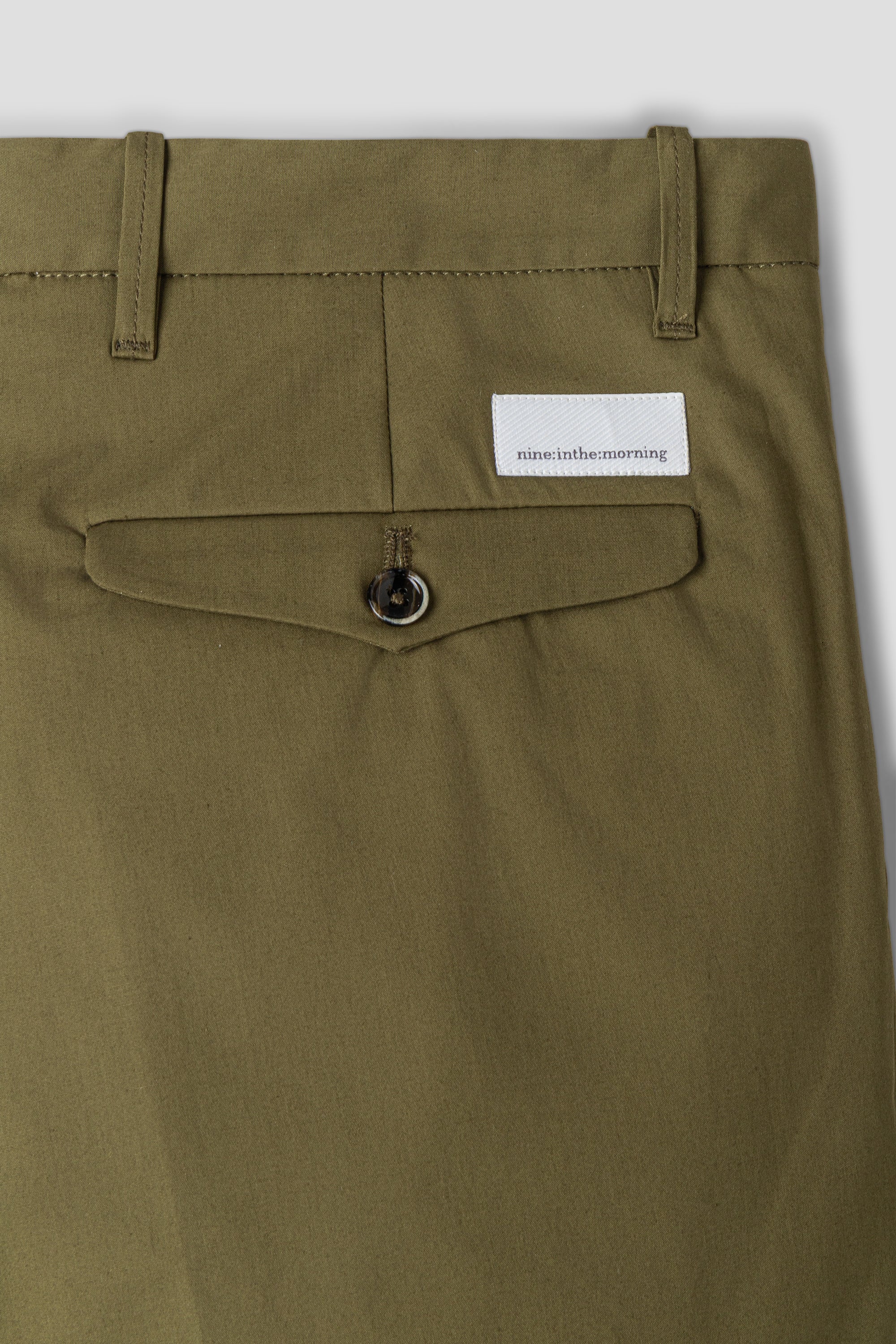 The Nine in the Morning Giove Piatto Slim Pant in Olive blends Italian tailoring with everyday versatility. Designed in a regular chino fit, the silhouette is clean and streamlined while maintaining comfortable ease through the leg.