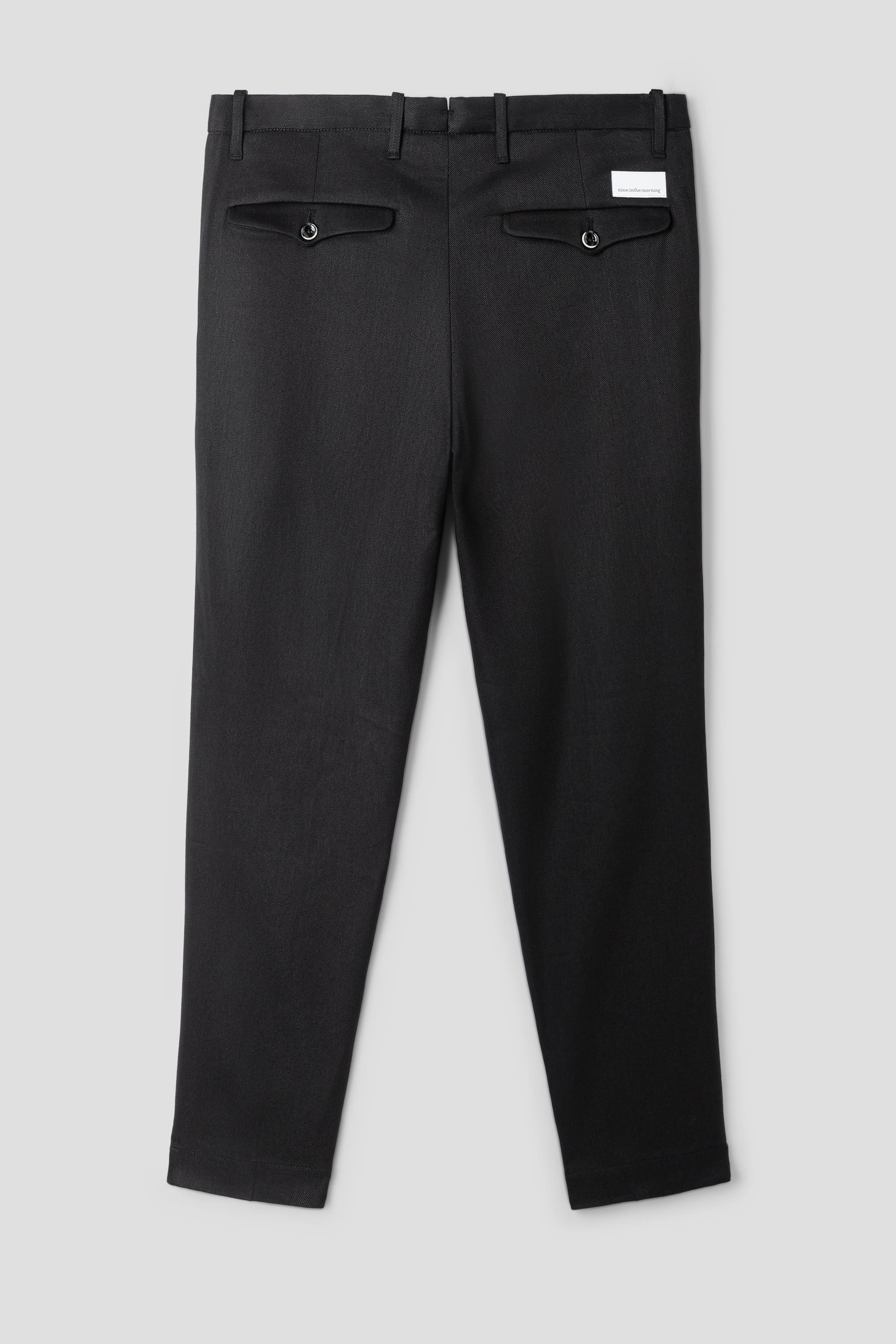 The deep Nero tone enhances the sophisticated character of the trousers and makes them easy to style with both relaxed knitwear and tailored jackets. Made in Italy, the pant reflects the high-quality craftsmanship that defines Nine in the Morning.