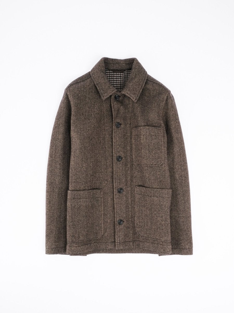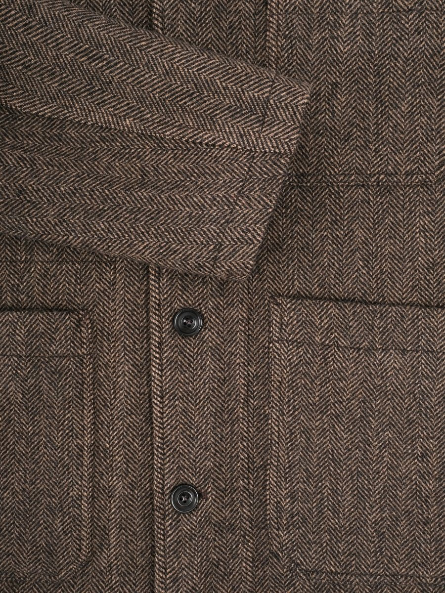 The Jamison Herringbone Jacket from Hartford blends refined craftsmanship with effortless versatility. Designed in a Straight Fit, this wool-mix overshirt offers a structured yet comfortable silhouette, perfect for layering in cooler seasons. The elegant beige and brown herringbone pattern adds timeless texture and depth, while the buttoned front placket, one chest pocket and two patch pockets provide a functional, workwear-inspired look. Expertly made in Morocco from a premium wool blend, this jacket reflects Hartford’s signature balance of casual sophistication and French elegance.