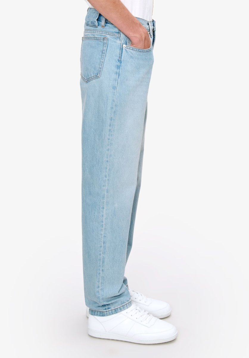 The A.P.C. Jean Martin in Light Blue channels authentic 90s denim culture through a clean, Parisian lens. Cut with a straight leg and a high waist, this silhouette delivers a balanced, vintage-inspired fit that feels both relaxed and refined. The softly washed light blue denim enhances its retro appeal, while A.P.C.’s signature minimalism keeps the look sharp, versatile, and effortlessly modern.