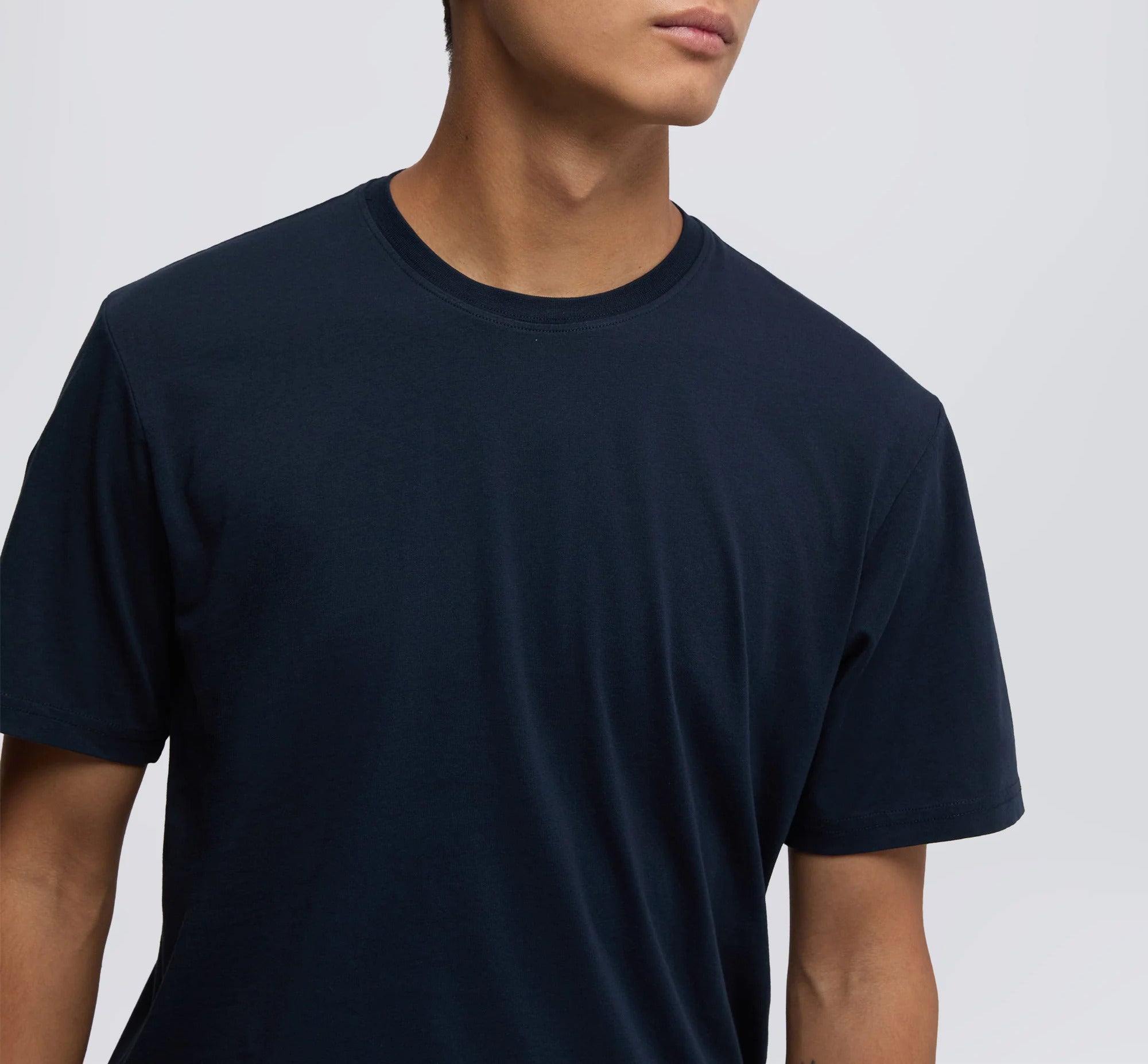 A refined everyday essential, the Aspesi Jersey T-Shirt Mod. 3107 in Navy delivers clean minimalism with premium Italian craftsmanship. Made from soft cotton jersey, it offers a smooth hand feel and a modern slim fit silhouette. Subtle branding at the back of the collar adds a discreet signature detail.
