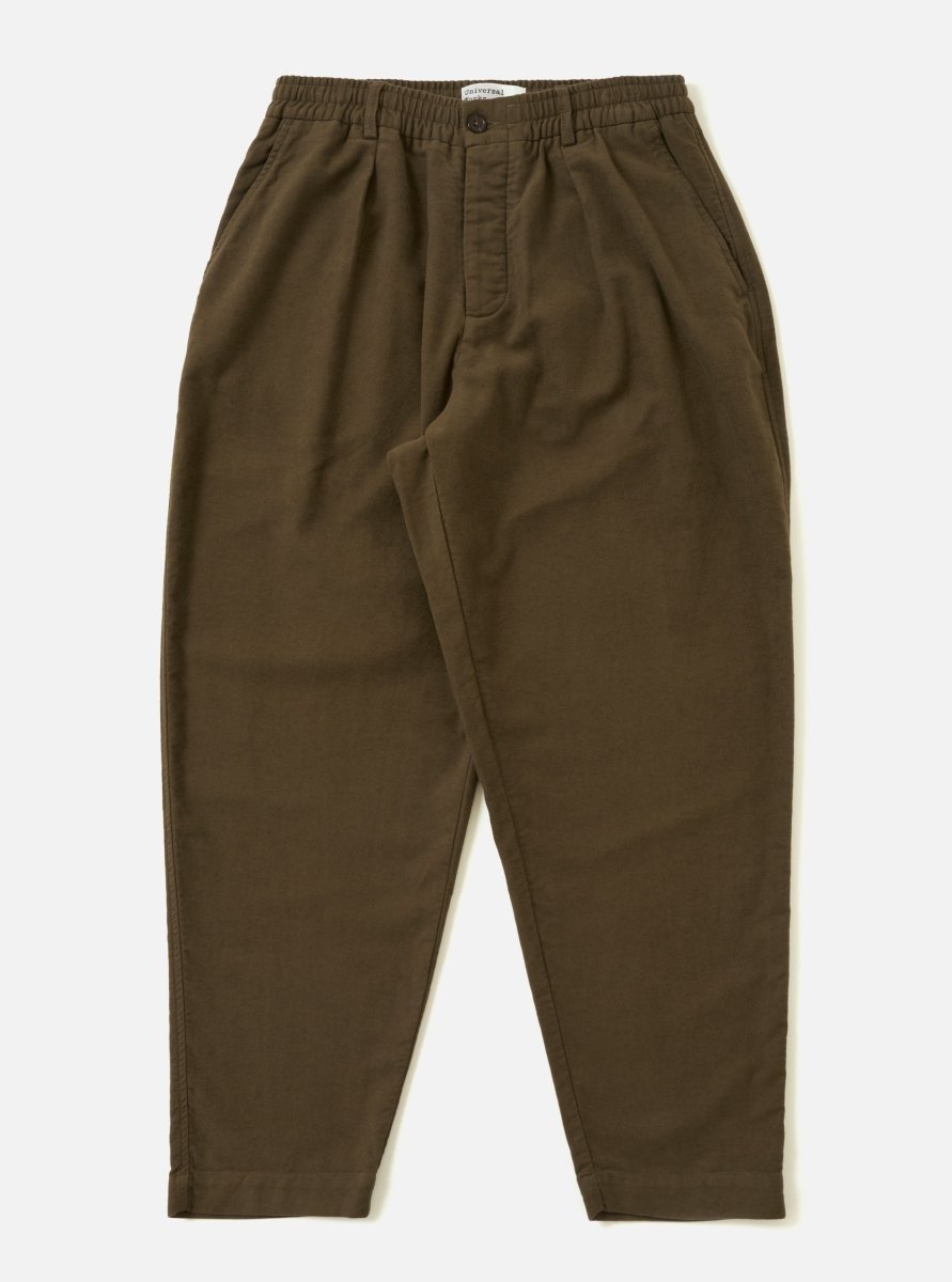 The Moleskin Pleated Track Pant from Universal Works blends classic tailoring with modern ease. Crafted from premium 100% cotton moleskin, it offers a soft touch and exceptional durability. The pleated front adds a refined silhouette, while the stretch waistband with belt loops ensures all-day comfort. Whether for work, travel or leisure, this khaki chino delivers effortless style and versatility. Made in Portugal, it stands for superior craftsmanship and responsible production.