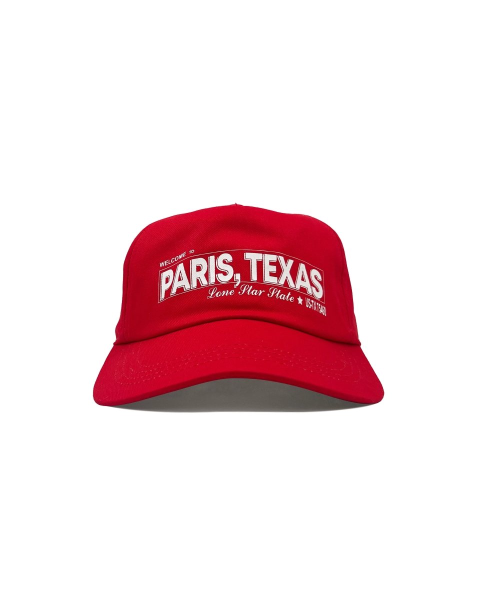 The Paris, Texas Cap delivers bold Americana spirit with a clean, graphic finish. Crafted from red cotton twill, it features a white “Paris, Texas – Lone Star State” front print. The structured crown, curved visor and adjustable back strap make it a versatile accessory for statement casual looks.