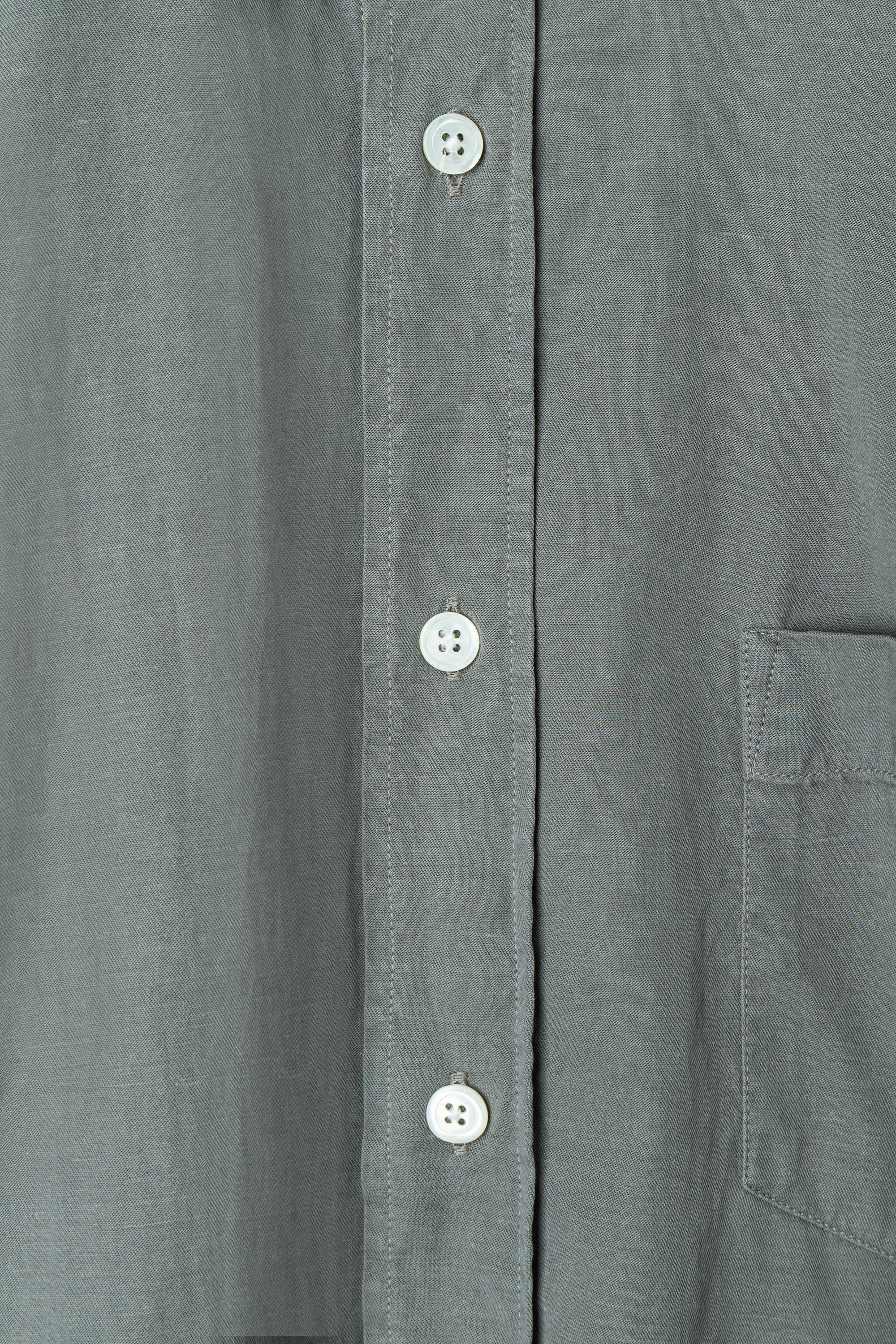 Designed with a clean silhouette, the shirt features a classic collar, chest pocket and slightly curved hem for versatile styling. The airy fabric and relaxed construction create an effortless balance between casual and refined summer wear.