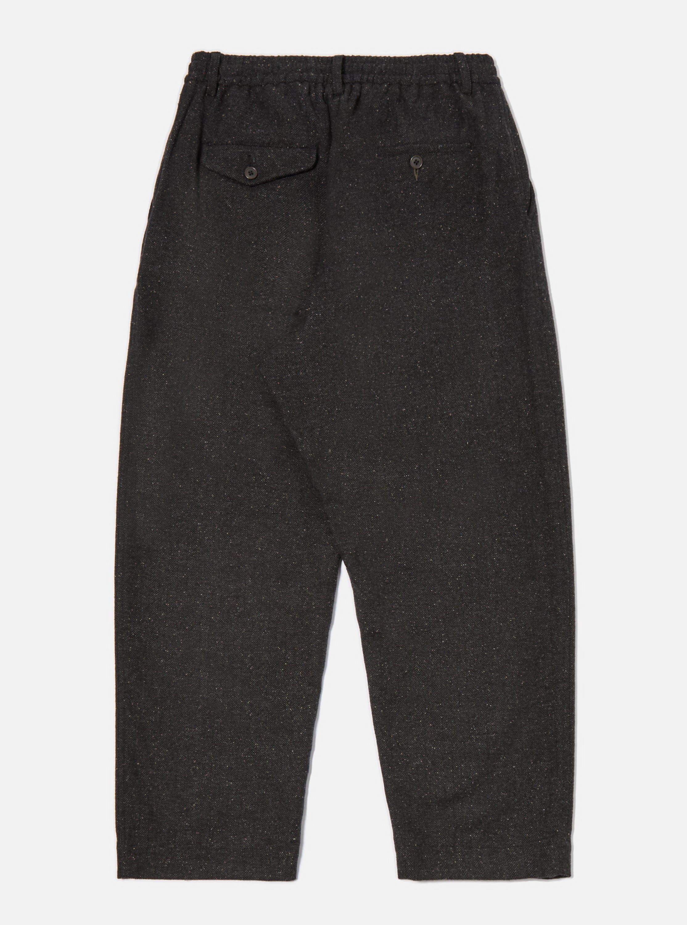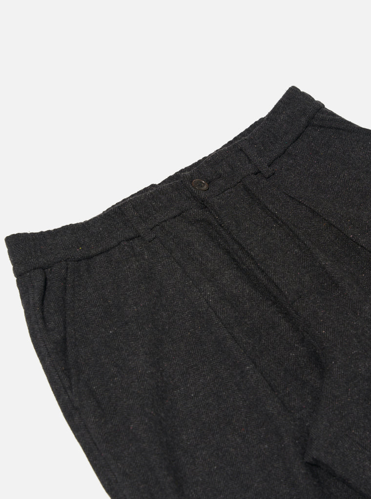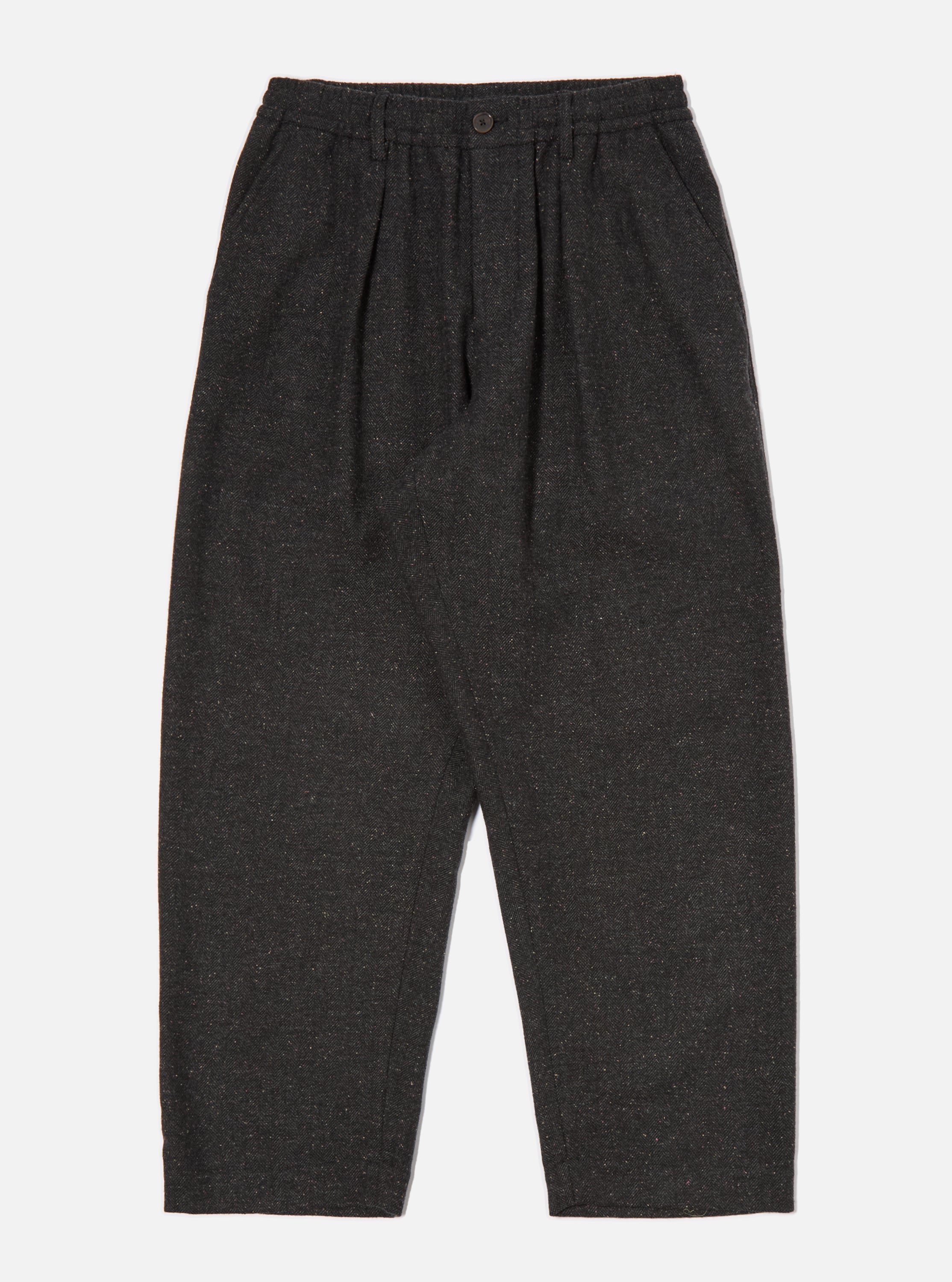 The Salt n Pepper Oxford Pant by Universal Works combines relaxed tailoring with premium fabrics. Made in India from a high-quality wool blend, these trousers feature a loose, wide-leg fit for a modern silhouette that ensures comfort and style. The distinctive black herringbone pattern adds subtle texture, making them versatile for both casual and smarter looks. With practical French pockets at the sides and a buttoned back pocket, these pants balance refined design with everyday functionality. A standout piece for contemporary wardrobes.