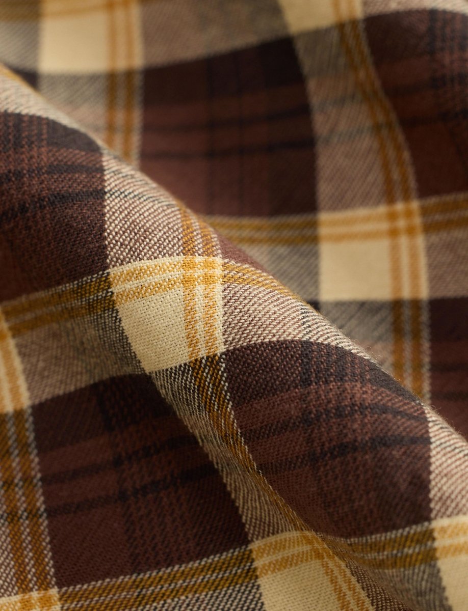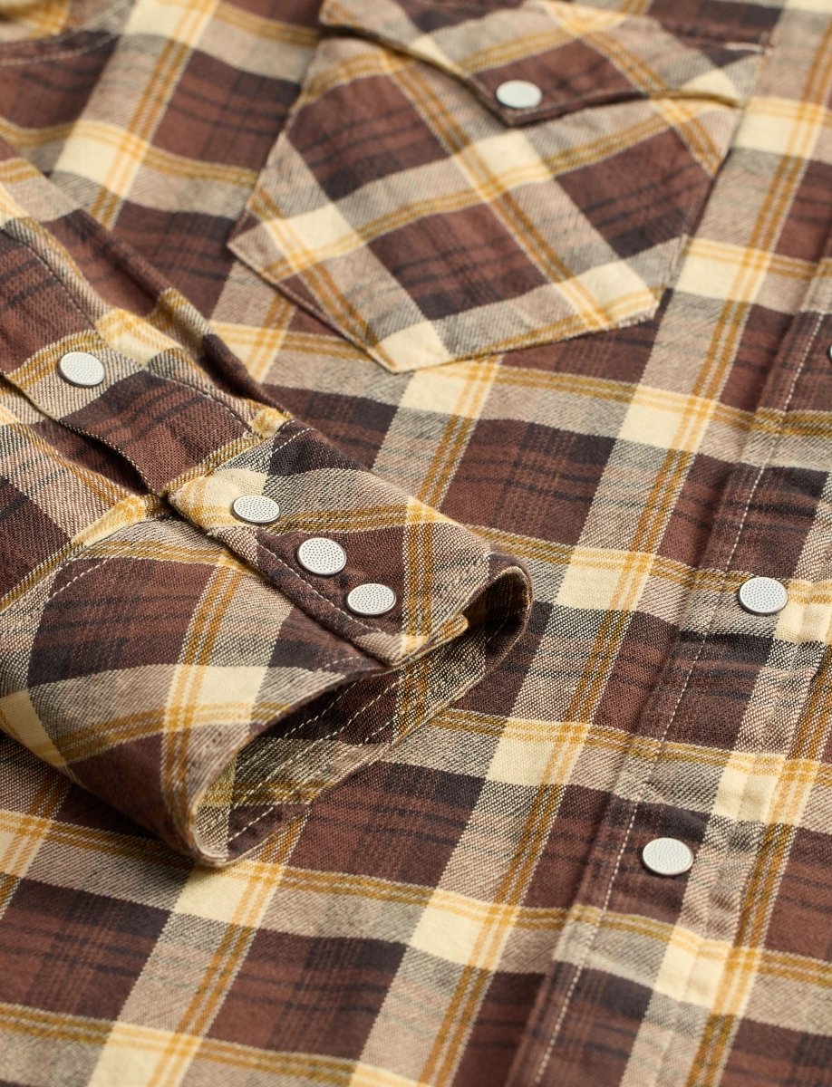 Slim Fit Plaid Twill Western Shirt / Brown/Mustard/Cream