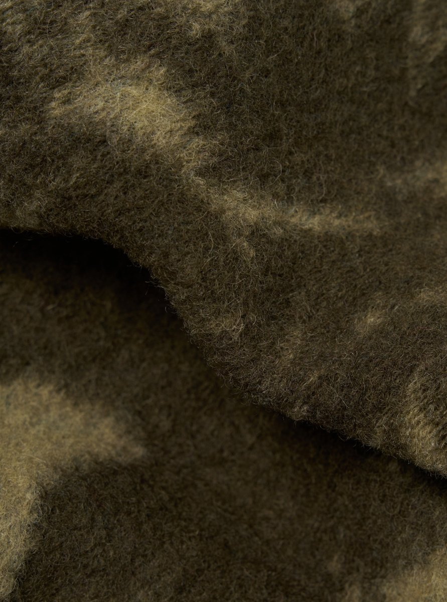 The Studio Fleece Cardigan from Universal Works perfectly balances comfort, function and timeless design. Crafted from a soft wool and recycled polyester blend, it provides natural warmth and durability while maintaining a lightweight feel. Designed in a standard fit, this button-front cardigan offers effortless layering for any occasion. Thoughtful details like one chest pocket, two patch pockets, and narrow ribbed cuffs add a touch of utility and style. The unique green and pale green camouflage pattern gives it a modern, distinctive edge. Made in Portugal with expert craftsmanship and fully machine washable for easy care.