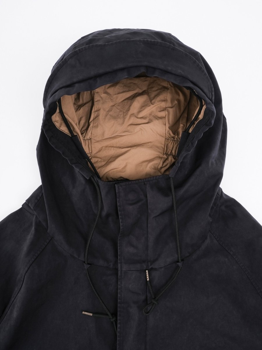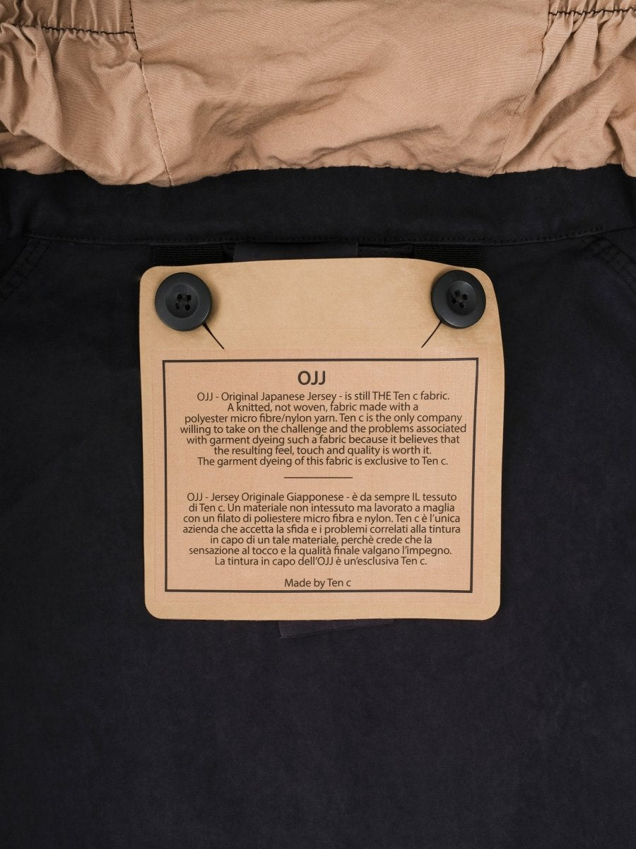 The Tempest Anorak by Ten C is a masterclass in craftsmanship and function. Made from OJJ – Original Japanese Jersey, this exclusive fabric combines 60% polyester and 40% nylon for a unique, garment-dyed texture that is waterproof and wind-resistant. Designed for everyday versatility, it features two buttoned flap pockets and two side entry pockets for practical storage. The adjustable hood offers full neck protection and includes a loop detail for added utility. A button-in down liner allows for adaptable warmth across seasons.