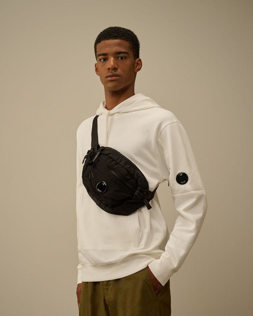 The Waist Bag from C.P. Company is crafted from Nylon B, a military-inspired, satin-finish multifilament nylon known for its durability and rich texture. Designed for everyday function and urban utility, it features an adjustable strap with buckle, a top handle, and multiple zip compartments for organized storage. The signature C.P. Company Lens detail on the front completes the look. Garment dyed for unique depth of colour and treated with an Anti-Drop water-resistant finish.