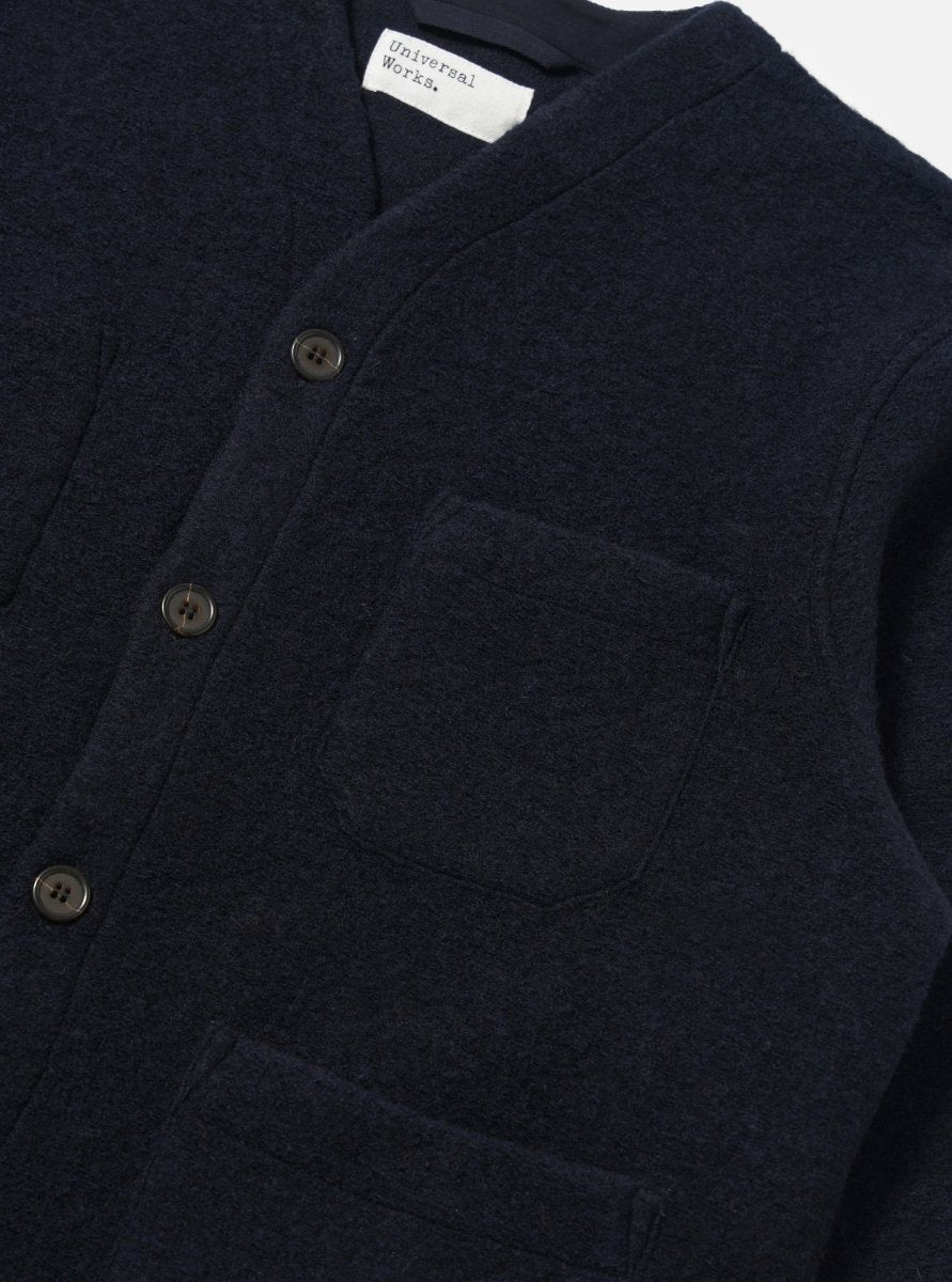 The Wool Fleece Cardigan from Universal Works perfectly balances comfort, function and timeless design. Crafted from a soft wool and recycled polyester blend, it provides natural warmth and durability while maintaining a lightweight feel. Designed in a standard fit, this button-front cardigan offers effortless layering for any occasion. Thoughtful details like one chest pocket, two patch pockets, and narrow ribbed cuffs add a touch of utility and style. The unique navy colour gives it a classic, distinctive edge. Made in Portugal with expert craftsmanship and fully machine washable for easy care.
