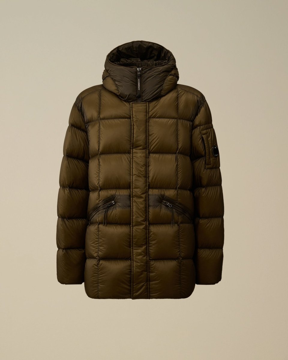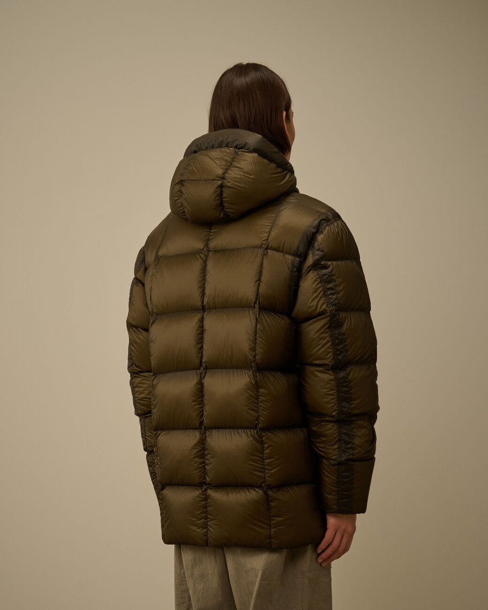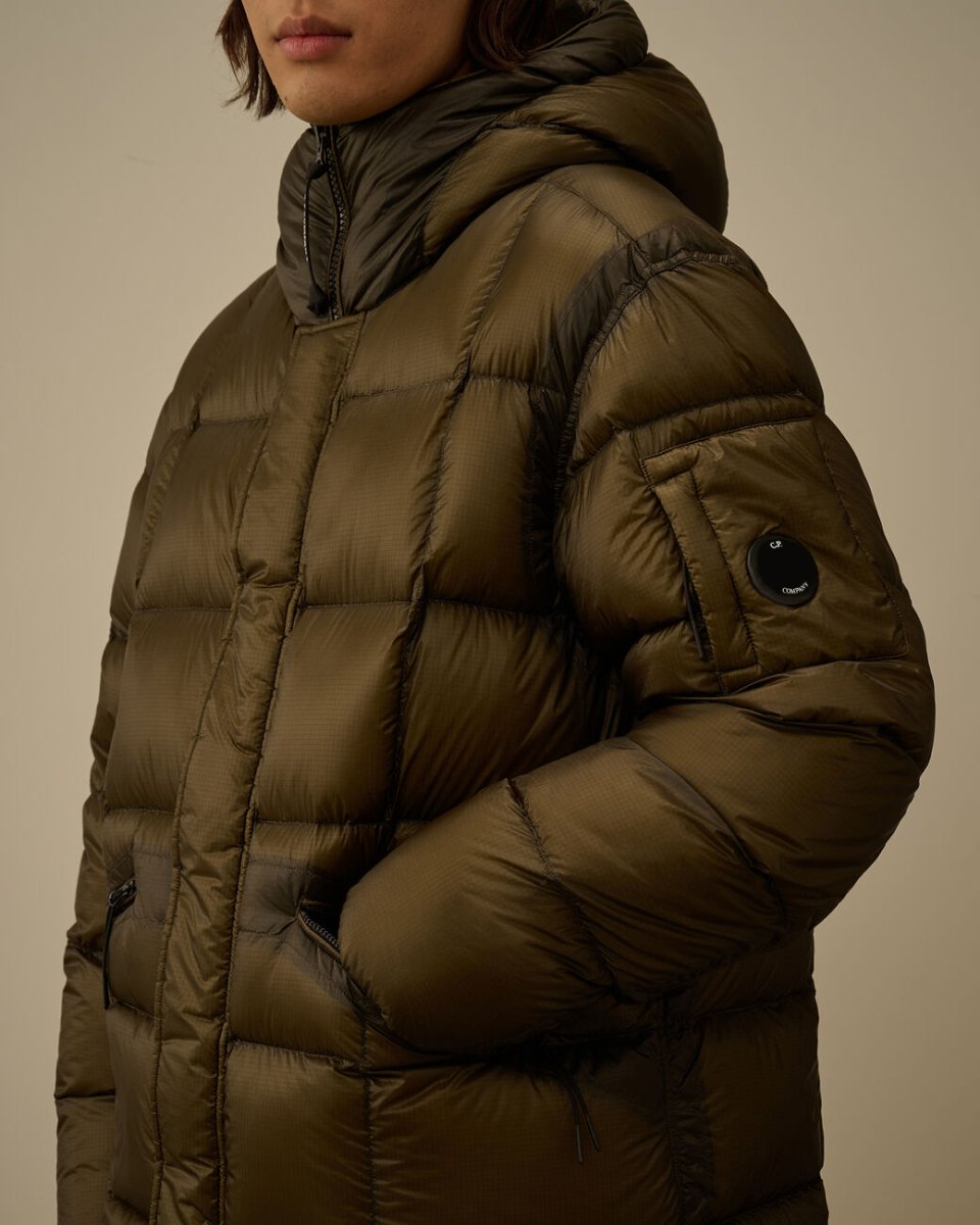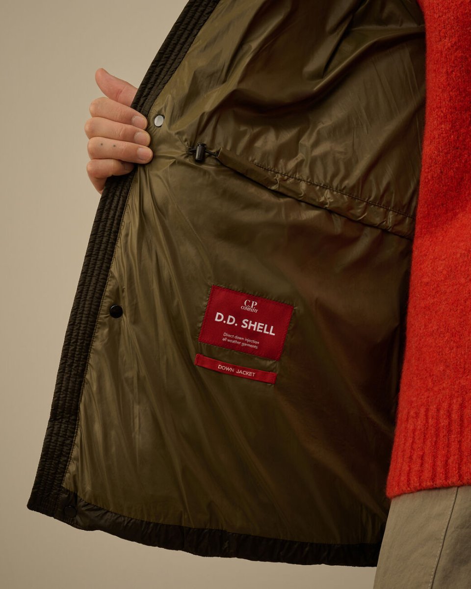 The long down jacket by C.P. Company is crafted from D.D. Shell, a lightweight yet opaque 7-denier nylon with a micro ripstop structure. The fabric’s subtle translucency highlights the jacket’s construction, while the direct down injection technique ensures superior insulation and even distribution of warmth.