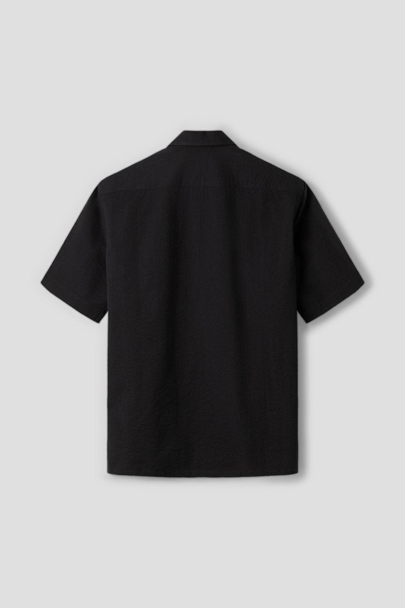 The Salvatore Piccolo Justin S/S Shirt in Black Seersucker combines relaxed summer elegance with authentic Italian craftsmanship. Made in Italy, this short-sleeve shirt is cut from lightweight seersucker cotton, known for its subtly puckered texture that enhances airflow and keeps the fabric comfortably away from the skin. The clean silhouette, classic collar, and chest pocket create a refined yet effortless look – ideal for warm-weather tailoring or modern smart-casual styling.