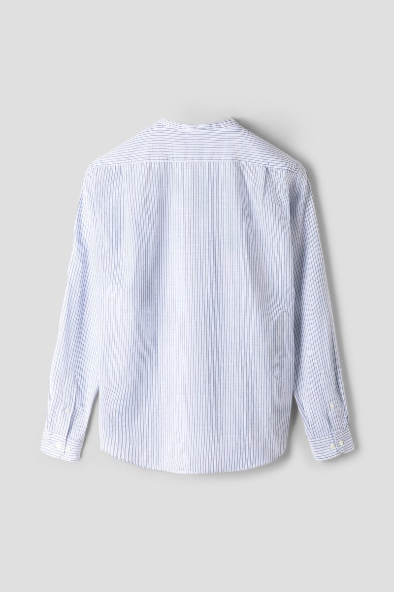 Premium Stand-Up Collar Shirt / Blue/White Stripe
