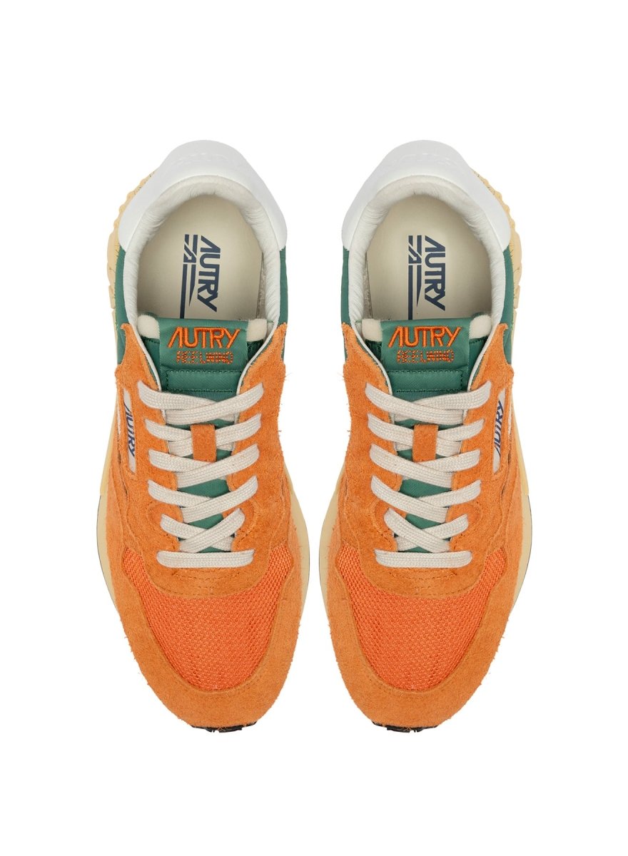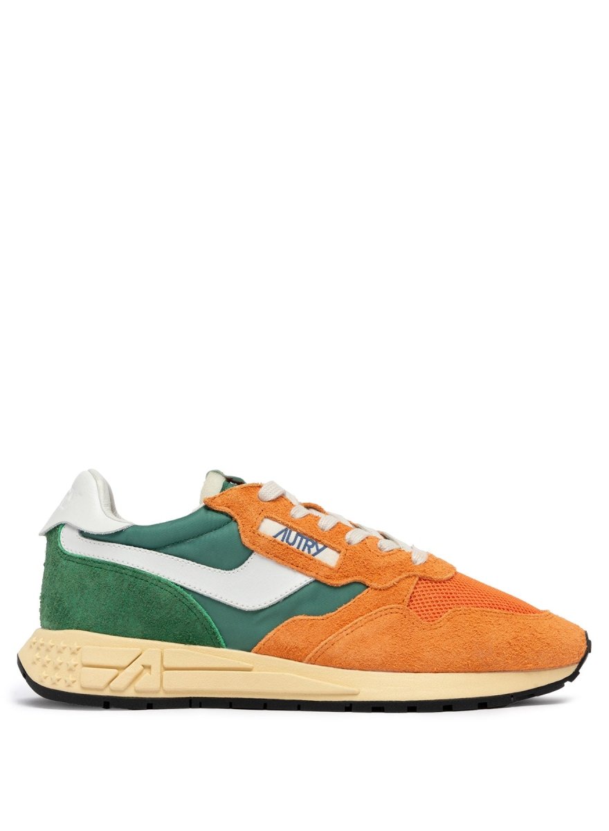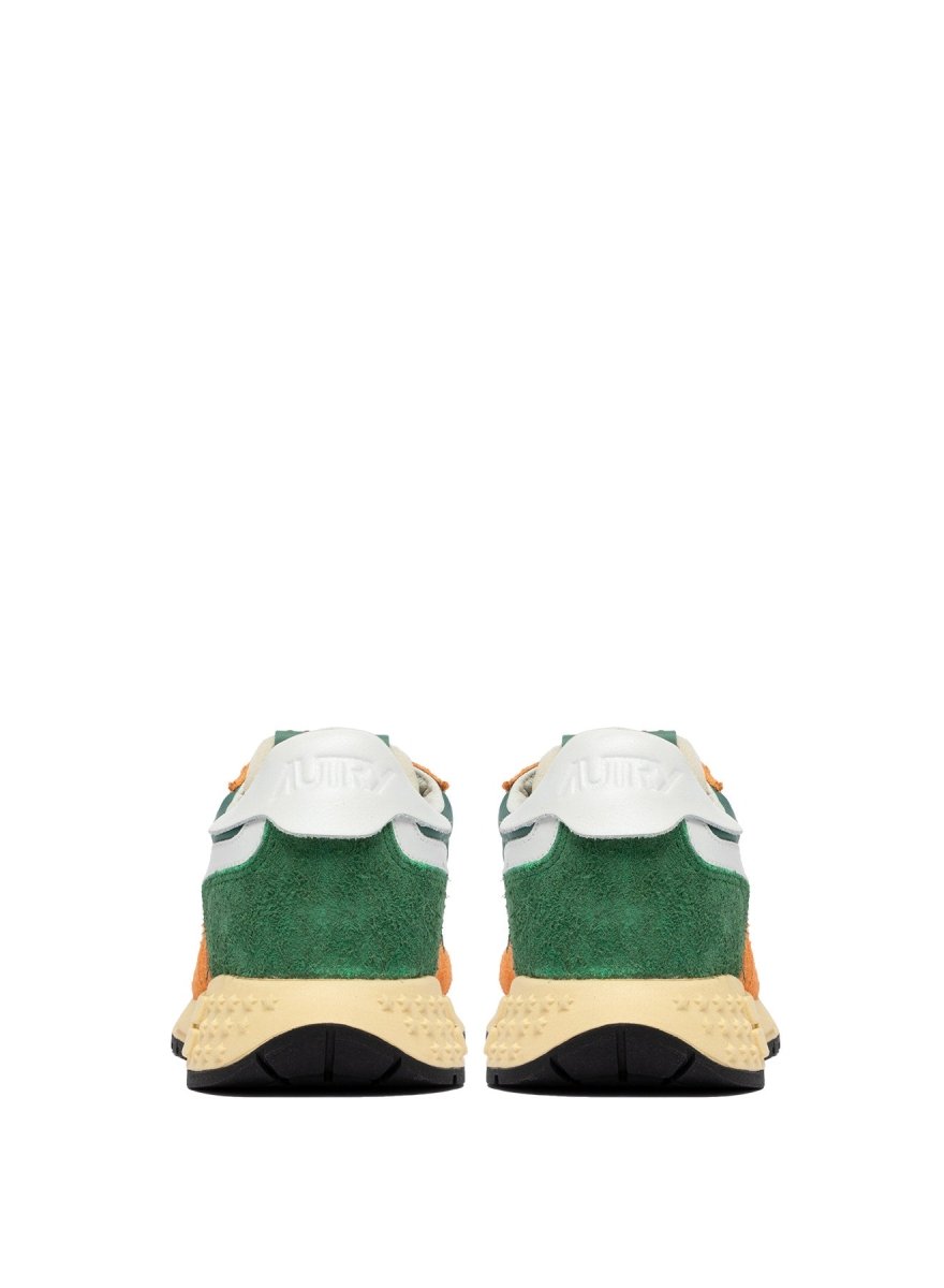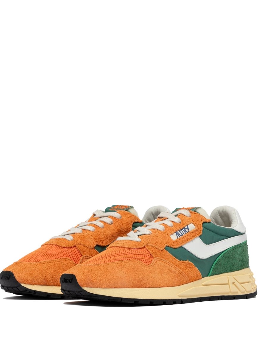 This Eden/Fant colorway stands out with a bold yet balanced mix of green and orange tones, paired with white leather side panels for contrast. Crafted from a premium combination of nylon, suede, leather, and mesh, the shoe offers breathability, flexibility, and durability. The mesh toe enhances airflow, while the cushioned lining and raised leather sockliner ensure all-day comfort. A running-style rubber outsole with star-pattern tread and the iconic A-arrow detail completes the look, providing reliable grip and a distinctive Autry signature.