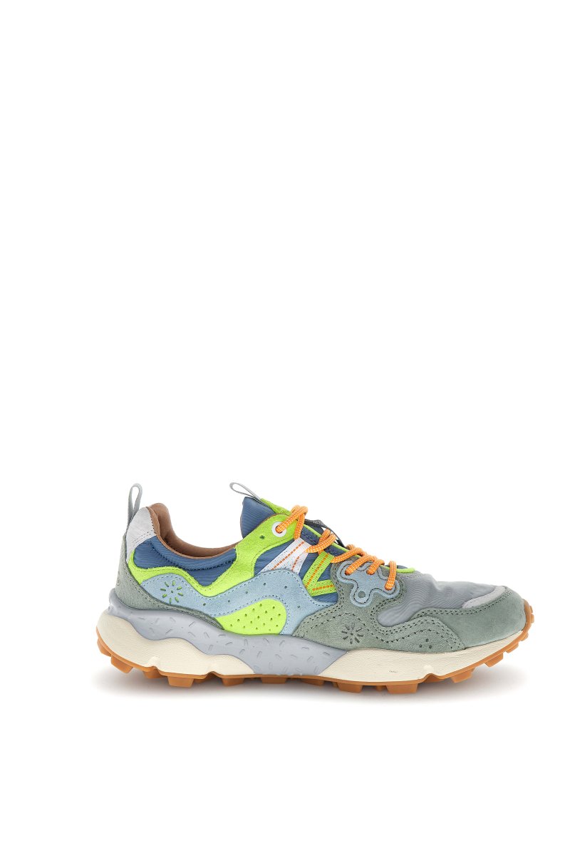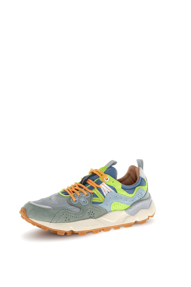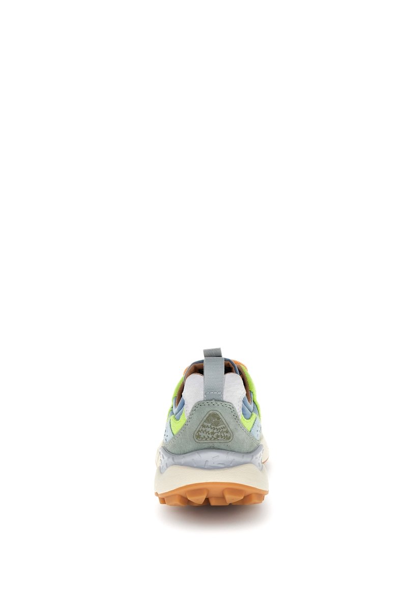 The Flower Mountain Yamano 3 in Light Military / Green Fluo fuses outdoor functionality with bold, contemporary colour accents. Designed for urban exploration and light trail use, this model combines technical performance with the brand’s signature layered aesthetic.