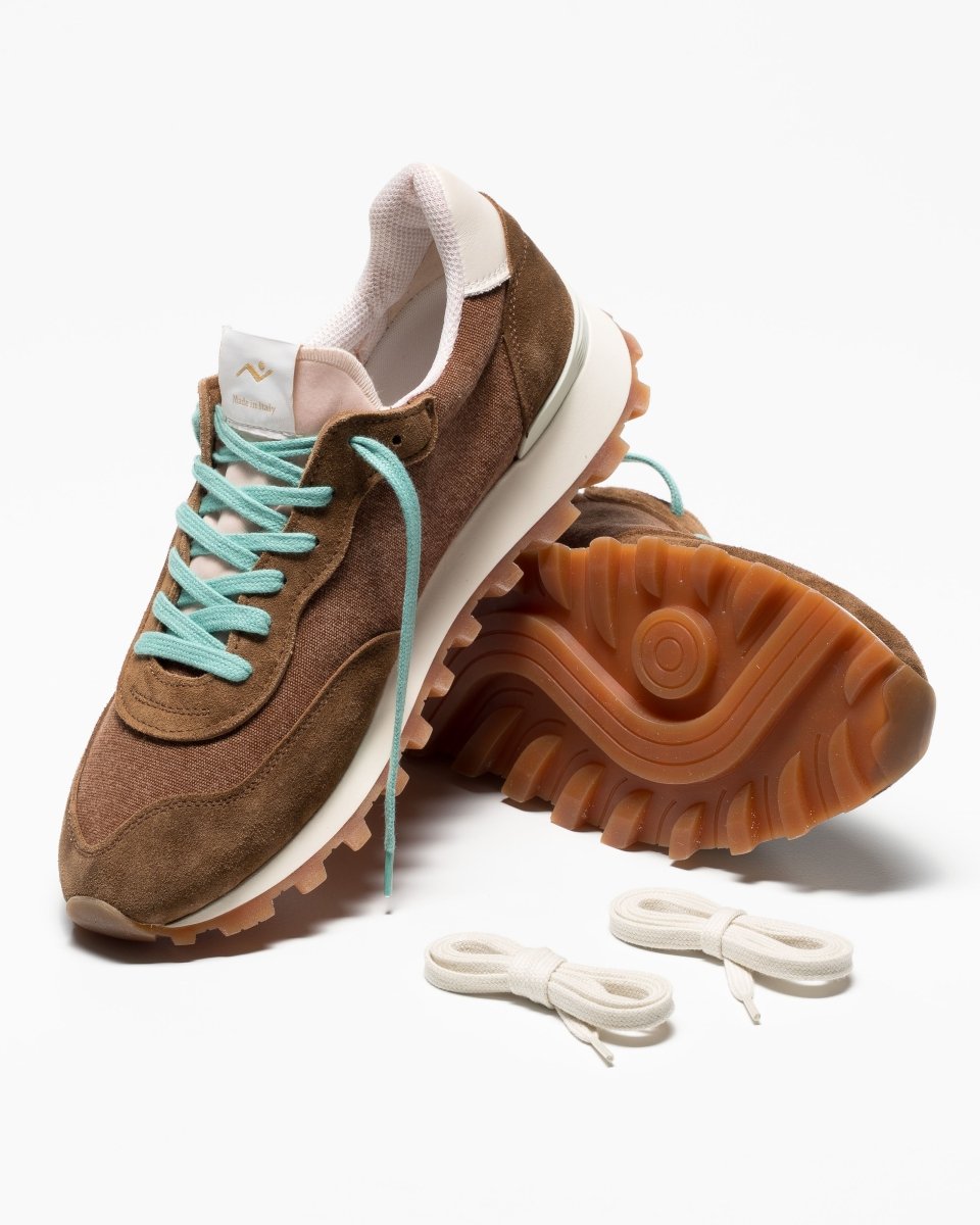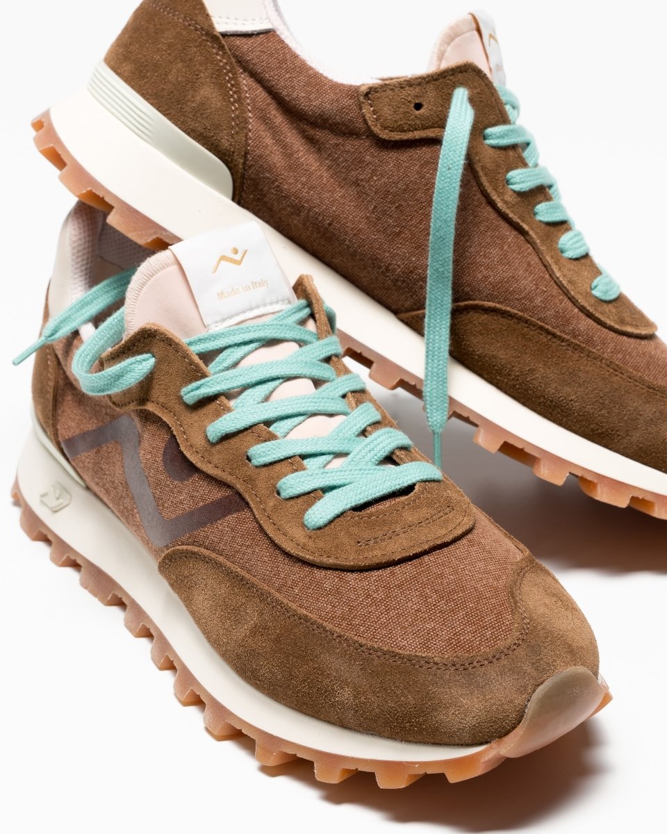 The No Map Society Veloce Water Washed Sneaker in Warm Wood / Pecan delivers relaxed Italian craftsmanship with a vintage-inspired washed finish. The lightweight design features a washed canvas upper combined with soft suede panels, creating a refined balance between casual style and durability.