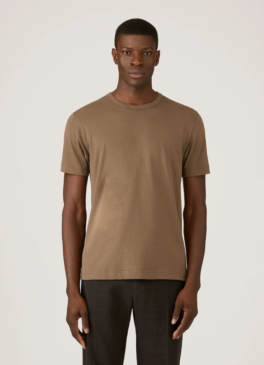 The Sunspel Regular Fit Heritage T-Shirt in Dark Cedar is a modern essential that perfectly balances timeless design with contemporary refinement. Crafted for everyday versatility, this premium T-shirt features a clean silhouette with a regular, easy fit and a refined heavyweight handle, making it suitable for both smart and casual styling.
