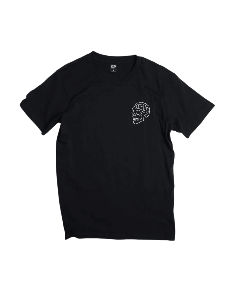 The Deus Ex Machina Venice Skull Tee in Black is a bold graphic T-shirt that captures the raw attitude of the Venice Temple. The striking skull chest print paired with the classic Venice address graphic on the back reflects the brand’s roots in motorcycle culture, surfing and creative expression.