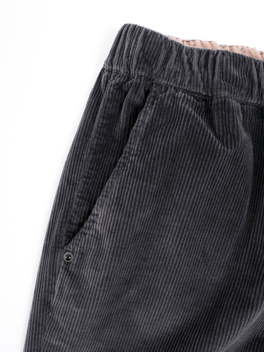 The White Sand “Greg” Corduroy Pants in Dark Grey combine modern comfort with refined Italian craftsmanship. Made from soft cotton corduroy, they offer a luxurious texture and relaxed sophistication. The elastic waistband with an integrated belt ensures a perfect fit and adds a contemporary utilitarian touch.