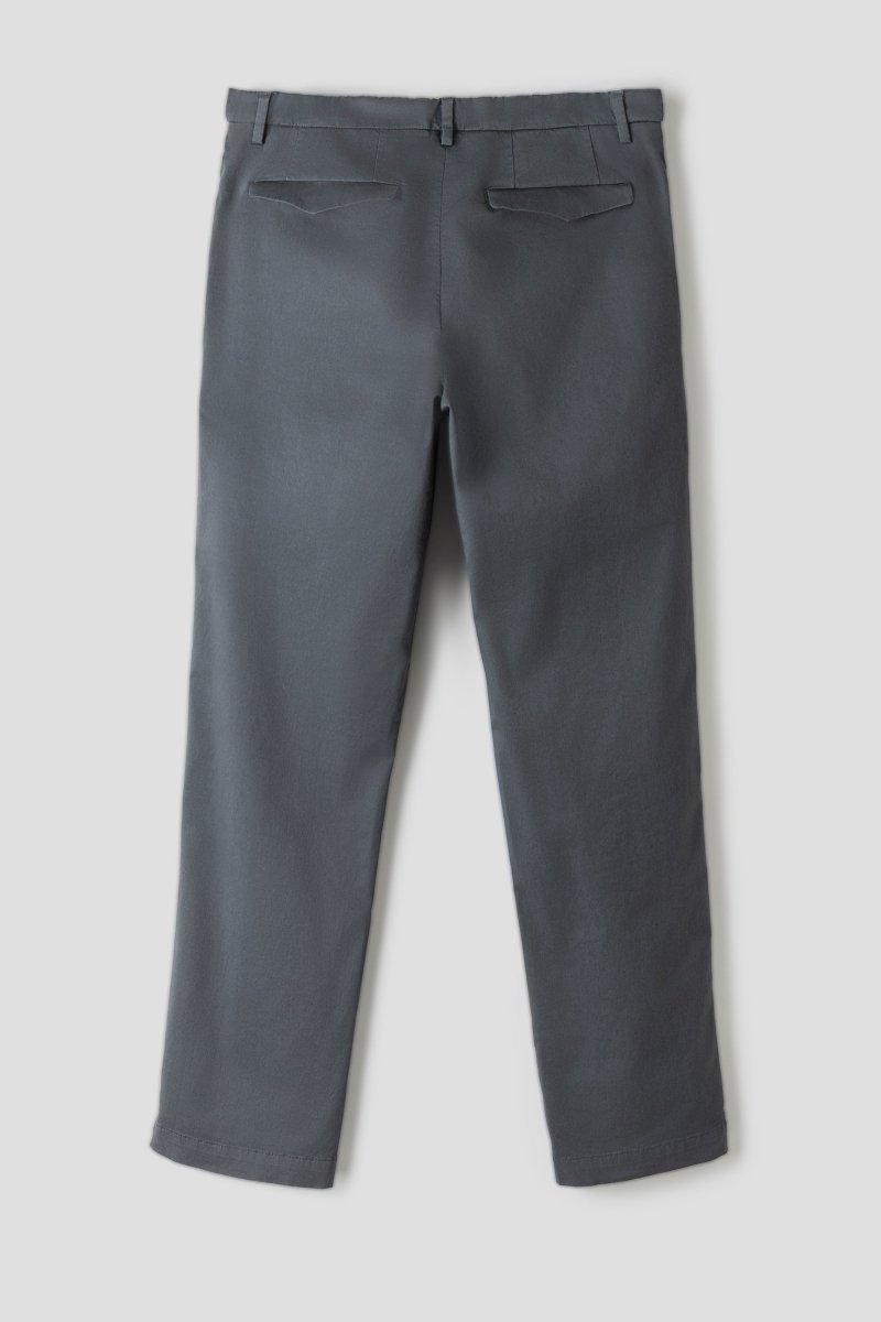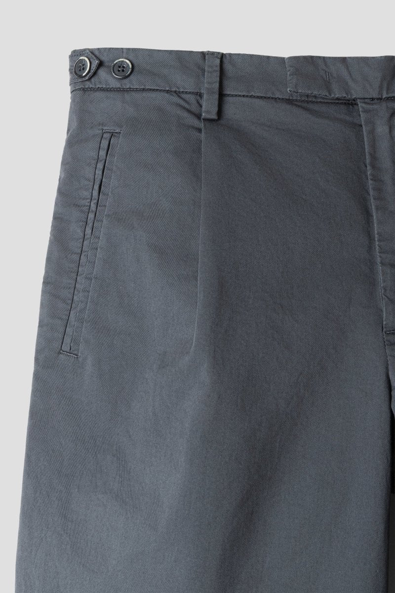 Crafted from lightweight stretch cotton gabardine, the fabric offers a smooth hand feel and subtle structure while ensuring day-long comfort. The soft finish enhances the natural drape, making these trousers equally suited for elevated everyday looks or modern business styling. The dark grey tone adds understated versatility, pairing effortlessly with crisp shirting, knitwear or tailored jackets.