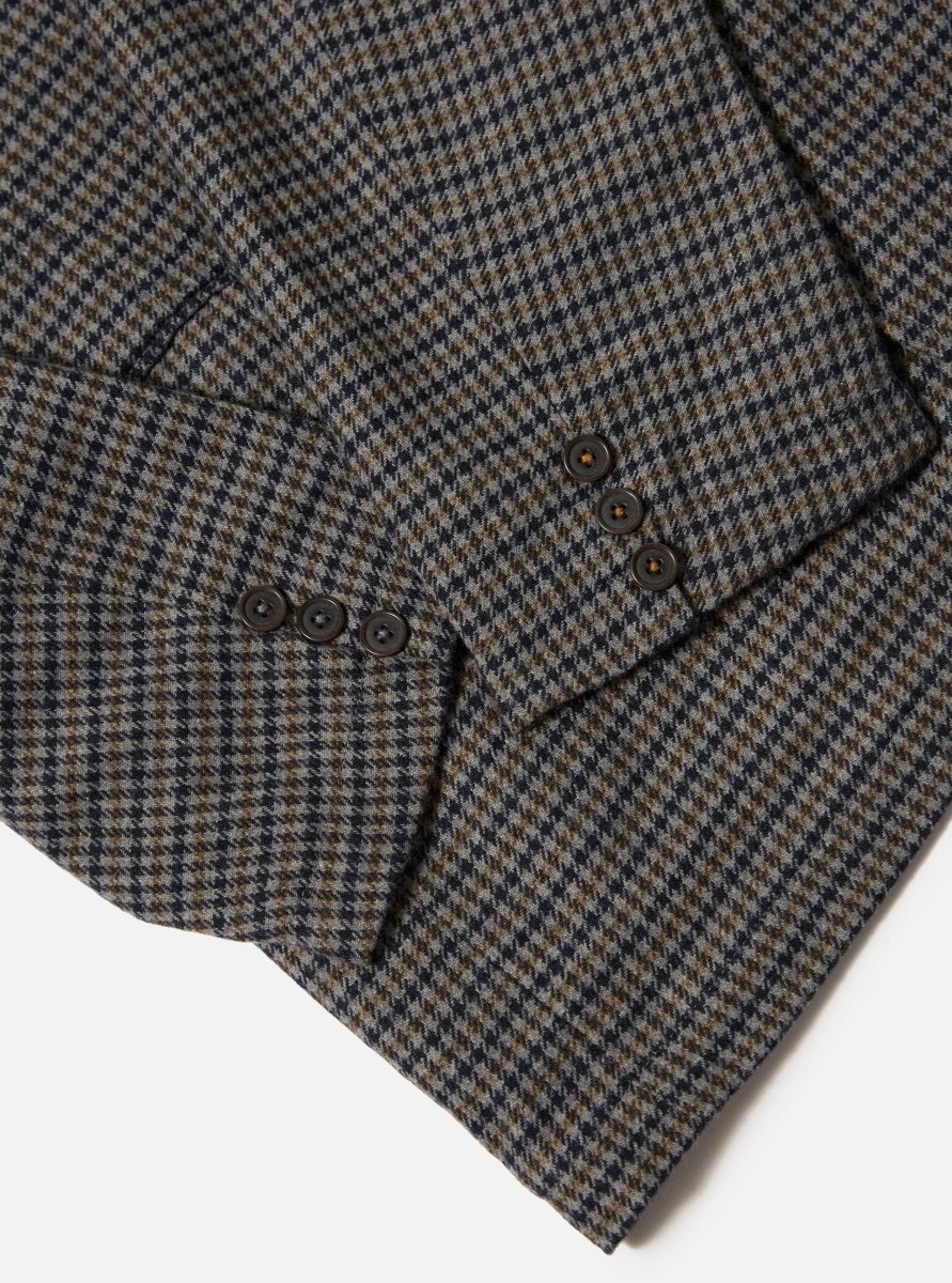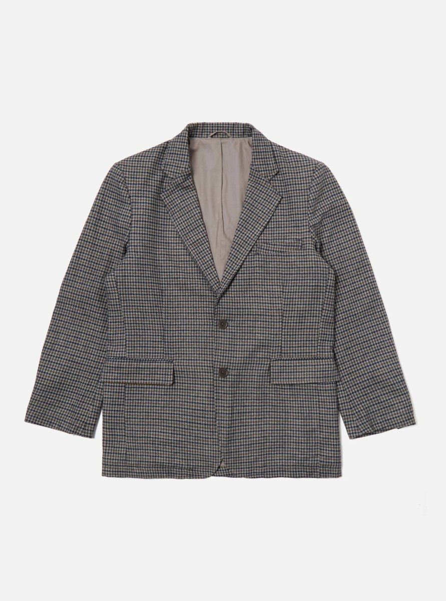The Boston Blazer from Universal Works is a refined yet easygoing jacket, offering a modern twist on traditional tailoring. Made from a soft wool blend with a classic houndstooth pattern, it features a regular fit and a slightly longer cut for a relaxed, contemporary silhouette. Light shoulder padding provides subtle structure without compromising comfort, making it ideal for both formal and smart-casual looks. Pair it with the matching Oxford Pant for a complete set.