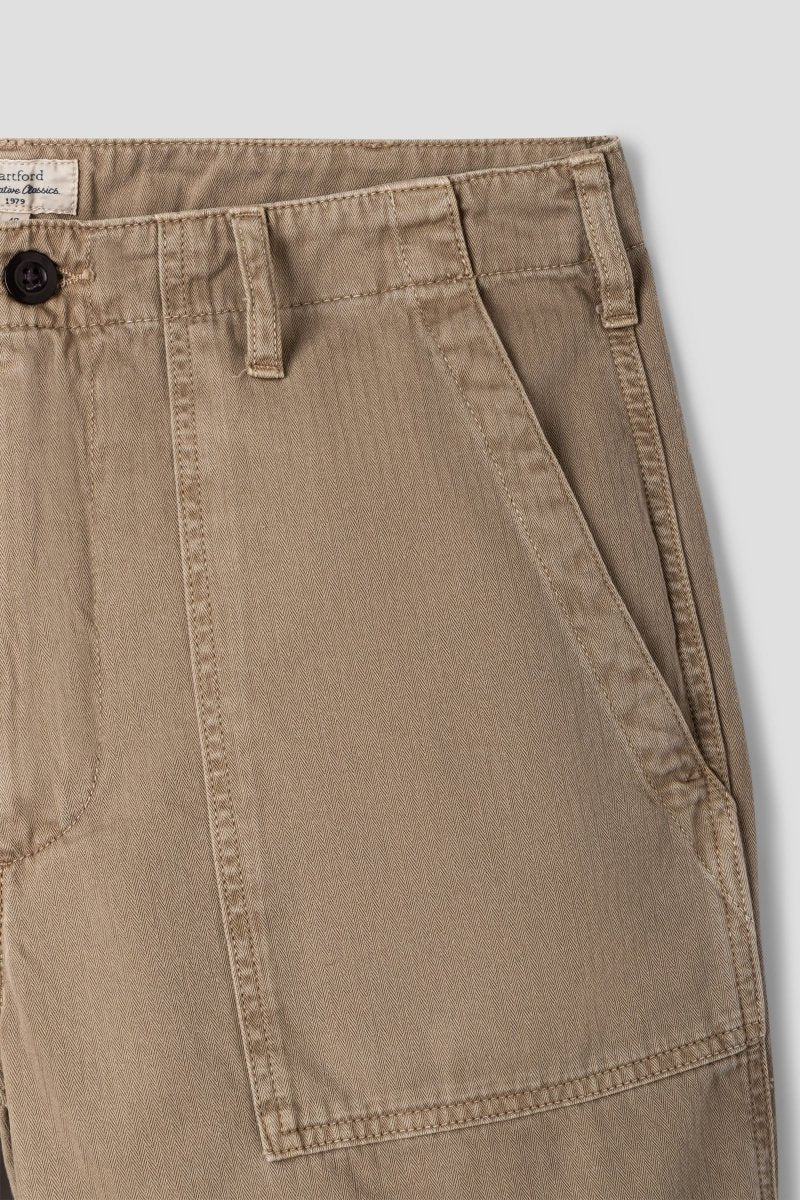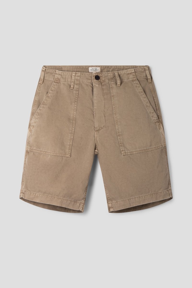 The Hartford Fatigue Short in Desert channels classic military inspiration through a refined, modern lens. Crafted from durable cotton herringbone, the fabric offers a distinctive texture and long-lasting wear, while the clean fatigue-style pockets underline its utilitarian heritage. A versatile summer staple that pairs rugged character with effortless sophistication.