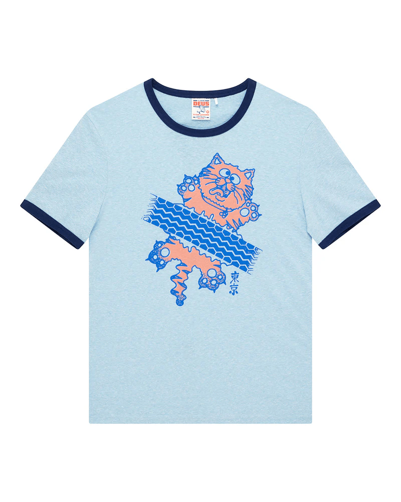 A playful take on vintage-inspired graphics, the Deus Records T-Shirt in Strong Blue stands out with bold artwork and refined detailing. Designed with a slightly slimmer fit, it offers a modern silhouette while the cotton-polyester jersey ensures softness, durability, and shape retention. The heavy enzyme stone wash enhances the vintage character, giving the tee a naturally worn-in look that complements its expressive design.
